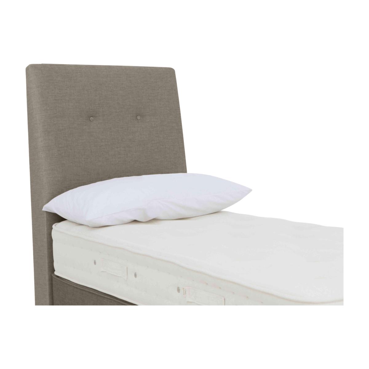 There’s no doubt that the elegant Askett floor standing headboard from Hypnos will transform your bedroom. Only at Furniture Village. Why you'll love it Elegant and minimal floor standing headboard by Hypnos. Contemporary luxury, traditional craftsmanship. Minimal buttoning for an understated glam look. Floor standing – it’s fully upholstered from top to bottom. Choose from a wide range of fabrics and colours. Available in single, small double, double, king and super king sizes. Made by hand in the UK. Only at Furniture Village. This floor standing headboard is part of our Hypnos collection. What you need to know Compatible with all standard divan bases. Some fabrics can show wear on areas of more use or in direct sunlight. Clean regularly using a soft brush or vacuum with the curtain attachment. Deal with any spills promptly. Professional cleaning advised for oil- and grease-based stains. Please read our upholstery care guide for more advice.