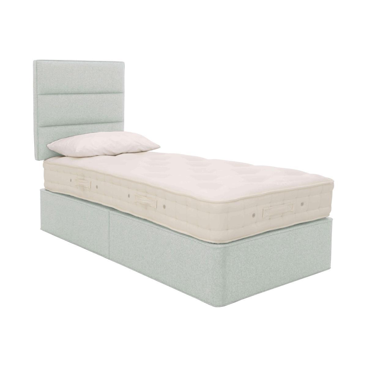 Sleep in blissful, cooling comfort all night long with the Hypnos Bespoke Bliss range. The firmer feel, rotatable mattresses have innovative 37.5® thermoregulating technology – a special wool-rich comfort layer blended with billions of active mineral particles which remove moisture and act as a thermostat, creating a healthier, naturally fresh sleep environment. Expertly engineered pocket springs with edge protection for total body support and layers of sumptuous fillings including British wool and sustainable cotton add to the luxury. The beautifully upholstered divan bases have a choice of drawer storage and fabric. Exquisitely handcrafted in the UK by the skilled artisans at Hypnos, the Hypnos Bespoke Bliss range comes with a 20 year guarantee. Headboard is an optional extra. Stay fresh and cool with 37.5® thermoregulating technology. Firmer feel mattress with 1000 ReActivePro™ 6-turn pocket springs. Single sided mattress, no need to turn just rotate regularly. Plush upholstered base with a choice of drawer storage. The Hypnos Bespoke Bliss divan set looks incredibly stylish and offers you a fabulously comfortable night’s sleep. It’s slightly firmer feel mattress has an innovative 37.5® comfort layer. Billions of active mineral particles remove moisture and act as a thermostat, so you enjoy a perfectly dry, fresh and cooling sleep environment. A generous 26cm deep, the mattress has 1000 ReActivePro™ expertly engineered pocket springs, each with 6 active turns and Triple Edge Protection™ for support to the edge of the bed. The mattress fillings are sustainably sourced cotton and wool layers, while the soft-to-the-touch cover is woven from unbleached cotton that is made naturally fire-resistant. The platform top, stylish divan base is built from sturdy FSC®-certified Scandinavian pine and upholstered in a choice of plush, fine fabrics. The Hypnos Bespoke collection allows you to pair any mattress with any divan base. The Bespoke Bliss divan set is beautifully handcrafted in Britain by the skilled artisans by Royal Warrant holders Hypnos. Product images are representative. Find out more. Did you know?. The Bliss mattress is single sided, so there’s no need to turn, just rotate it regularly. Our recommendation is to rotate the mattress weekly for the first 3 months of use and then once every season. Please air the mattress for four hours after delivery to freshen and allow any aromas from storage to dissipate. It may take time for your mattress to attain its full size once the springs have settled to the correct position. This is due to the mattress being upright during transit. Settlement of fillings and indentations caused by body weight compressing the fillings are nothing to worry about, not a defect but a natural characteristic of a luxury mattress with generous layers of natural fibres. Settlement can be minimised by regularly rotating the mattress.