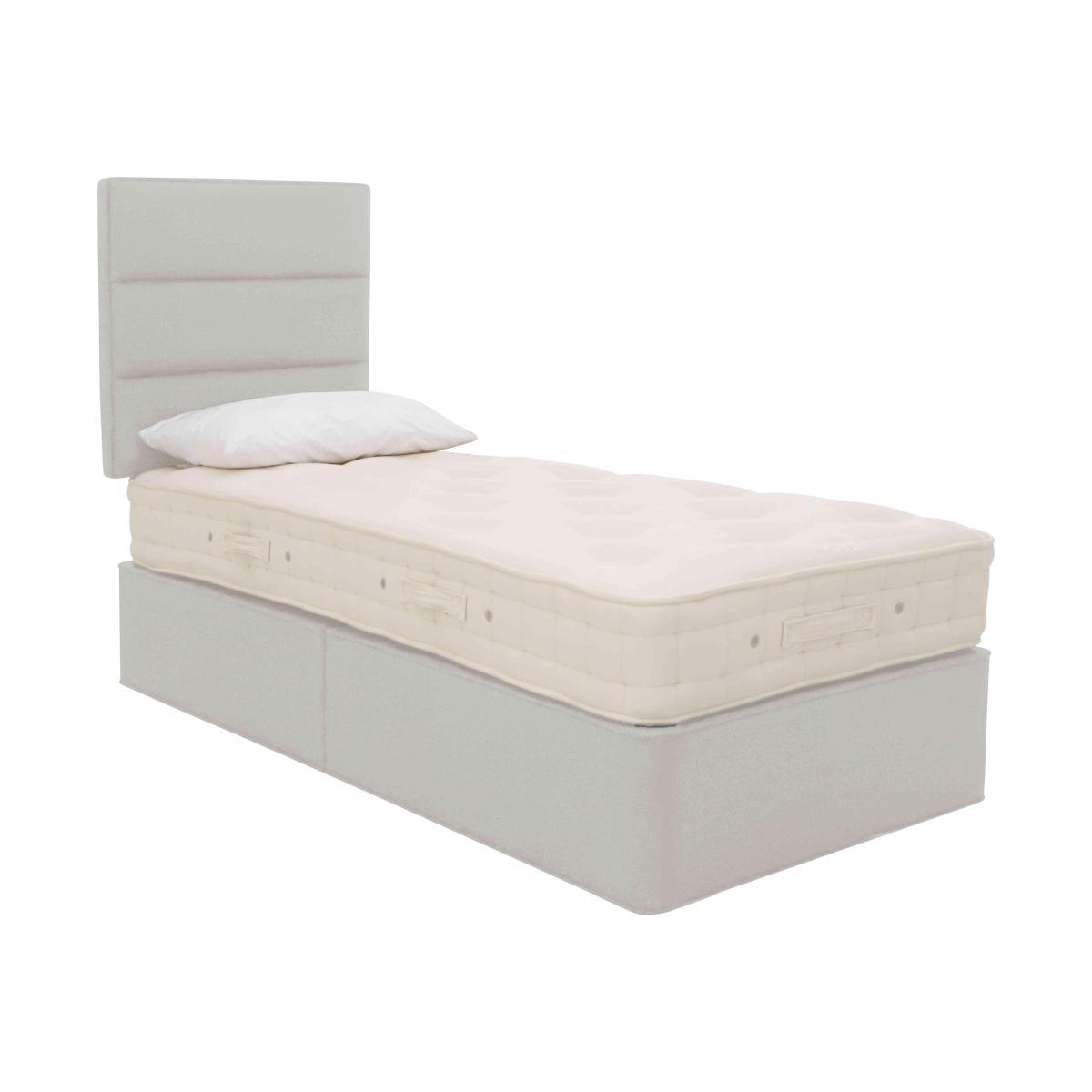 Choose incredible comfort and a healthier, fresher night’s sleep with the Hypnos Bespoke Brilliance range. The medium comfort, turnable mattresses provide a cool, dry and comfortable sleep environment thanks to their innovative 37.5® thermoregulating technology – a special wool-rich comfort layer blended with billions of active mineral particles which remove moisture and act as a natural thermostat. You’ll feel supported and pampered by the expertly engineered pocket springs and layers of sumptuous sustainable cotton and British wool fillings. The exquisitely upholstered divan bases are shallow with a stylish, stand out leg. Beautifully crafted in Britain by the skilled artisans at Hypnos, the Hypnos Bespoke Brilliance range comes with a 20 year guarantee. Headboard is an optional extra. With the medium-feel support of the Hypnos Embrace Deluxe Cotton collection – and the same fantastic natural wool and cotton fillings. Stay fresh and cool with 37.5® thermoregulating technology. Medium feel mattress with 1200 ReActivePro™ 7-turn pocket springs. Double-sided, turn with the seasons for optimum performance. Stylish divan base with storage options. The Hypnos Bespoke Brilliance divan set scores highly on style, but it scores even higher on comfort. Thanks to its luxurious cotton and pure British wool fillings and innovative 37.5® wool rich comfort layer you’ll be cushioned in perfect comfort all night long. Billions of active mineral particles remove moisture naturally and act as a thermostat, so your sleeping environment is perfectly dry, fresh and cooling. 25cm deep, the medium feel mattress pampers you from head to toe with 1200 ReActivePro™ expertly engineered pocket springs, each with 7 active turns and Triple Edge Protection™ for support to the edge of the bed. The cover of the mattress is tactile, soft unbleached cotton which is made naturally fire-resistant. The platform top, stylish divan base is built from sturdy FSC®-certified Scandinavian pine and upholstered in a choice of plush, fine fabrics. The Hypnos Bespoke collection allows you to pair any mattress with any divan base. We also have this bed available in a stylish shallow base design with legs. The Bespoke Brilliance divan set is beautifully handcrafted in Britain by the skilled artisans by Royal Warrant holders Hypnos. Product images are representative. Find out more. Did you know?. The Brilliance mattress is double-sided, so turn it with the seasons for optimum performance. Please air the mattress for four hours after delivery to freshen and remove any aroma from storage. It may take time for your mattress to attain its full size once the springs have settled to the correct position. This is due to the mattress being upright during transit. Settlement of fillings and indentations caused by body weight compressing the fillings are natural and not considered defects. This can be minimised by regular rotating.