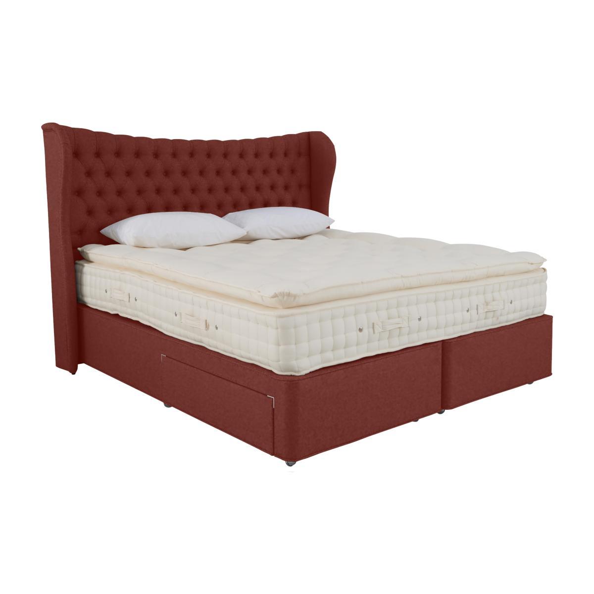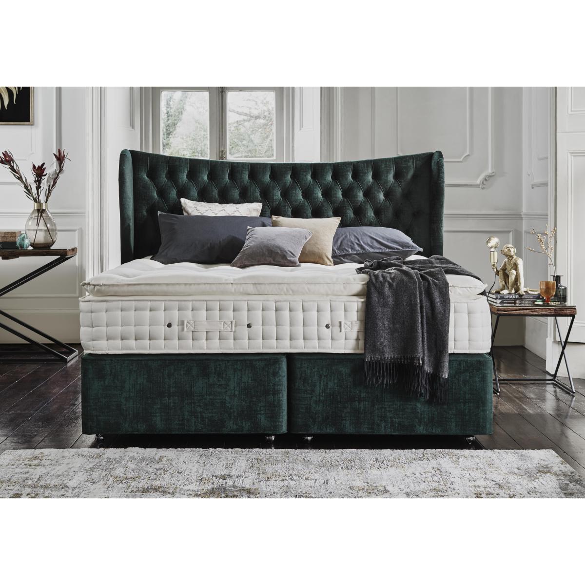 Discover the unparalleled comfort and support of the beautifully handcrafted Hypnos Bespoke Emperor range. This premium collection boasts a luxuriously comfortable pocket sprung, pillow top mattress with a stylish contemporary divan base and headboard that brings a touch of luxury to any bedroom. With Red Tractor-assured 100% British wool and all-natural fillings, its cosy layers of rich natural fillings support the body during sleep and ensure you wake up feeling rejuvenated every morning. Best of all, it offers a range of space-saving ottoman and drawer options for all your storage needs. The Hypnos Bespoke Emperor range is handcrafted in Britain by skilled artisan bedmakers exclusively for Furniture Village. Sleep like royalty with the luxurious, handcrafted Hypnos Bespoke Emperor Mattress with Divan Base. With its wide range of storage options, keeping your bedroom looking beautiful couldn’t be easier. Why you’ll love it. Luxurious divan set with 3,300 pocket springs and pillow top. Space-saving ottoman and drawer storage options. Sumptuous layers of Red Tractor-assured 100% British wool and natural fillings. 100% sustainable and recyclable. Choose between a medium, firm or dual tension mattress. Available in a beautiful selection of colours and fabrics. Pairs beautifully with Hypnos headboards. Handmade in Britain by skilled artisans exclusively for Furniture Village. What you need to know. Headboard shown is available seperately. Mattress type: Pocket spring. Depth: 30 cm. Firmness: Medium and firm. Springs: 3300 springs. Pillow top: Yes. Fillings: Red Tractor-assured 100% British wool, natural flax, hemp and cotton fillings. Cover: Cotton and viscose. Sizes: Super king, king, double, small double, single. Requires turning: No, just rotate regularly. Storage: Yes. Ottoman and drawer options. Care: Please air your new mattress for four hours to remove any aroma from storage. It may take time for your mattress to attain its full size once the springs have settled to the correct position. Settlement of fillings and indentations caused by body weight compressing the fillings are natural and not considered defects. Be sure to rotate this mattress regularly.