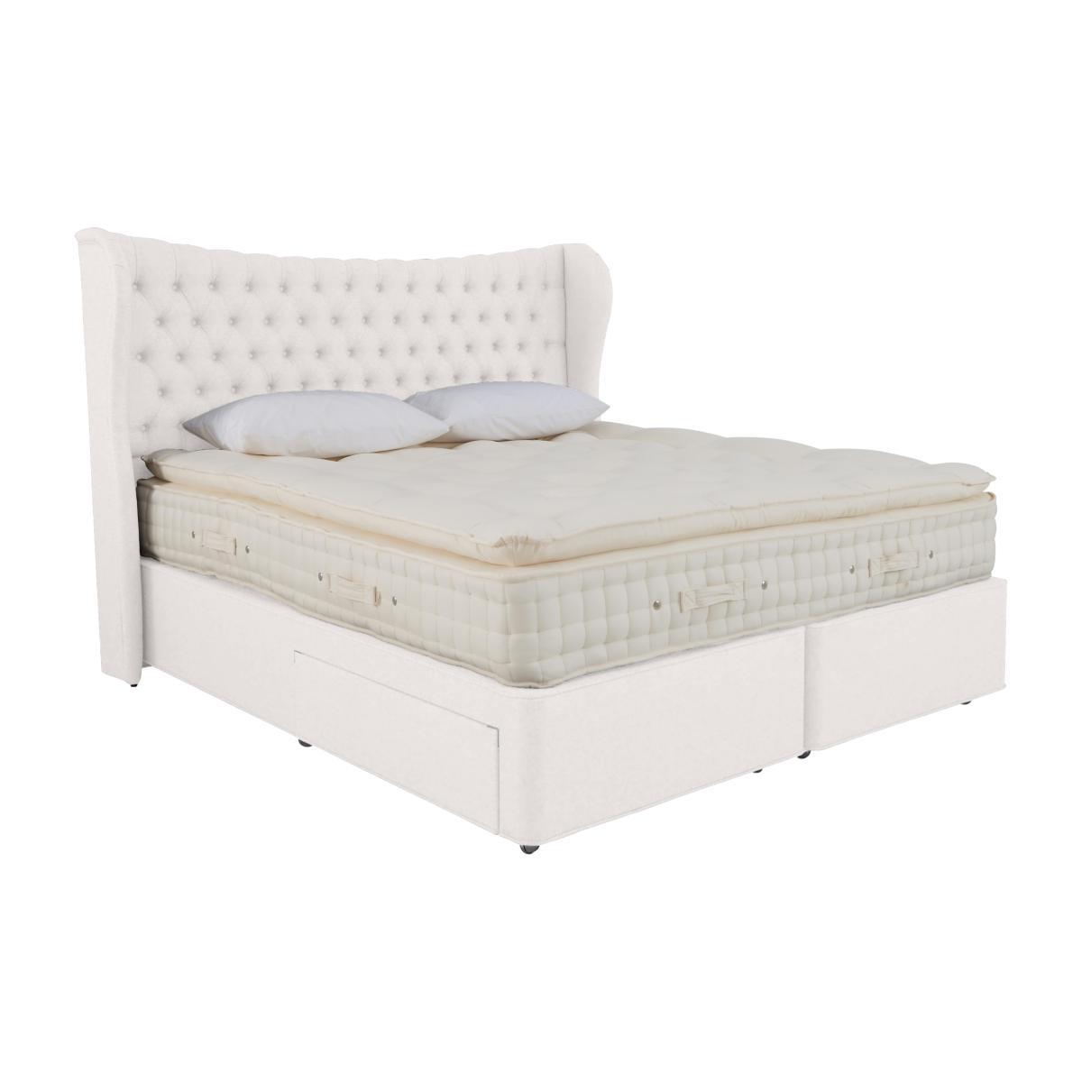 Discover the unparalleled comfort and support of the beautifully handcrafted Hypnos Bespoke Emperor range. This premium collection boasts a luxuriously comfortable pocket sprung, pillow top mattress with a stylish contemporary divan base and headboard that brings a touch of luxury to any bedroom. With Red Tractor-assured 100% British wool and all-natural fillings, its cosy layers of rich natural fillings support the body during sleep and ensure you wake up feeling rejuvenated every morning. Best of all, it offers a range of space-saving ottoman and drawer options for all your storage needs. The Hypnos Bespoke Emperor range is handcrafted in Britain by skilled artisan bedmakers exclusively for Furniture Village. Sleep like royalty with the luxurious, handcrafted Hypnos Bespoke Emperor Mattress with Divan Base. With its wide range of storage options, keeping your bedroom looking beautiful couldn’t be easier. Why you’ll love it. Luxurious divan set with 3,300 pocket springs and pillow top. Space-saving ottoman and drawer storage options. Sumptuous layers of Red Tractor-assured 100% British wool and natural fillings. 100% sustainable and recyclable. Choose between a medium, firm or dual tension mattress. Available in a beautiful selection of colours and fabrics. Pairs beautifully with Hypnos headboards. Handmade in Britain by skilled artisans exclusively for Furniture Village. What you need to know. Headboard shown is available seperately. Mattress type: Pocket spring. Depth: 30 cm. Firmness: Medium and firm. Springs: 3300 springs. Pillow top: Yes. Fillings: Red Tractor-assured 100% British wool, natural flax, hemp and cotton fillings. Cover: Cotton and viscose. Sizes: Super king, king, double, small double, single. Requires turning: No, just rotate regularly. Storage: Yes. Ottoman and drawer options. Care: Please air your new mattress for four hours to remove any aroma from storage. It may take time for your mattress to attain its full size once the springs have settled to the correct position. Settlement of fillings and indentations caused by body weight compressing the fillings are natural and not considered defects. Be sure to rotate this mattress regularly.