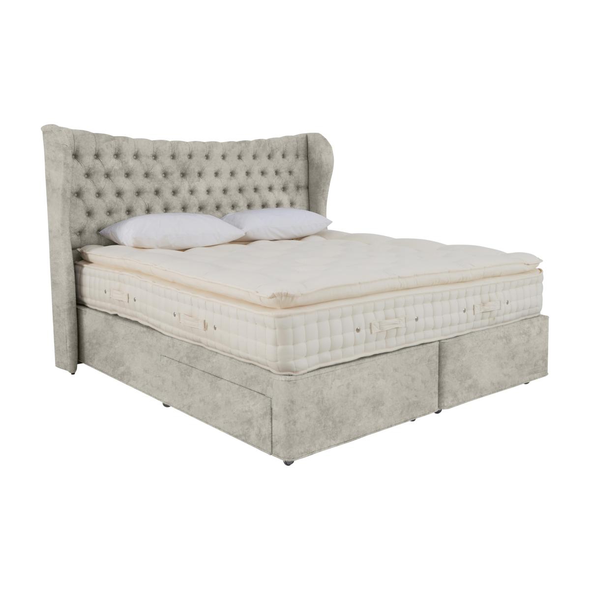 Discover the unparalleled comfort and support of the beautifully handcrafted Hypnos Bespoke Emperor range. This premium collection boasts a luxuriously comfortable pocket sprung, pillow top mattress with a stylish contemporary divan base and headboard that brings a touch of luxury to any bedroom. With Red Tractor-assured 100% British wool and all-natural fillings, its cosy layers of rich natural fillings support the body during sleep and ensure you wake up feeling rejuvenated every morning. Best of all, it offers a range of space-saving ottoman and drawer options for all your storage needs. The Hypnos Bespoke Emperor range is handcrafted in Britain by skilled artisan bedmakers exclusively for Furniture Village. Sleep like royalty with the luxurious, handcrafted Hypnos Bespoke Emperor Mattress with Divan Base. With its wide range of storage options, keeping your bedroom looking beautiful couldn’t be easier. Why you’ll love it Luxurious divan set with 3,300 pocket springs and pillow top. Space-saving ottoman and drawer storage options. Sumptuous layers of Red Tractor-assured 100% British wool and natural fillings. 100% sustainable and recyclable. Choose between a medium, firm or dual tension mattress. Available in a beautiful selection of colours and fabrics. Pairs beautifully with Hypnos headboards. Handmade in Britain by skilled artisans exclusively for Furniture Village. What you need to know Headboard shown is available seperately. Mattress type: Pocket spring Depth: 30 cm Firmness: Medium and firm. Springs: 3300 springs. Pillow top:Yes. Fillings: Red Tractor-assured 100% British wool, natural flax, hemp and cotton fillings. Cover: Cotton and viscose. Sizes: Super king, king, double, small double, single Requires turning: No, just rotate regularly. Storage:Yes. Ottoman and drawer options. Matress care: Please air your new mattress for four hours to remove any aroma from storage. It may take time for your mattress to attain its full size once the springs have settled to the correct position. Settlement of fillings and indentations caused by body weight compressing the fillings are natural and not considered defects. Be sure to rotate this mattress regularly.