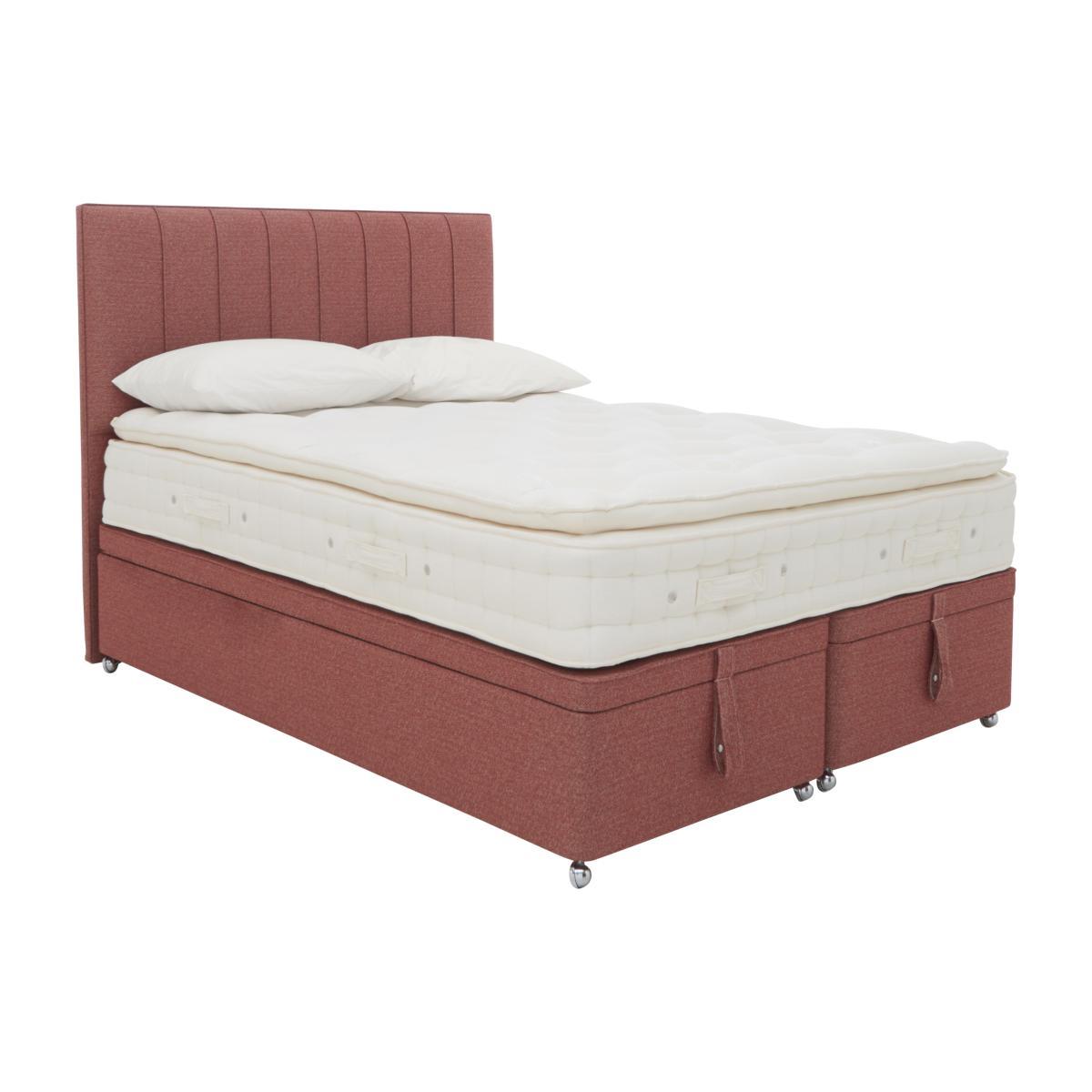 Enjoy luxurious pocket sprung comfort, and a healthier, cooler, fresher night’s sleep with the Hypnos Bespoke Finesse range. The medium comfort, rotatable, pillow top mattresses contain ingenious, innovative 37.5® temperature regulating technology – with a wool-rich comfort layer containing billions of active mineral particles which remove moisture and act as a natural thermostat. Expertly engineered pocket springs and layers of sumptuous fillings including British wool and sustainable cotton add to the all-embracing comfort. The beautifully upholstered divan bases have spacious end-ottoman storage. Exquisitely handcrafted in Britain by the skilled artisans at Hypnos, the Hypnos Bespoke Finesse range comes with a 20 year guarantee. Headboard is an optional extra. Stay fresh and cool with 37.5® temperature regulating technology. Medium feel mattress with 1200 ReActivePro™ 7-turn pocket springs. A luxurious pillow top mattress you don’t need to turn, just rotate regularly. Stylish end-lift ottoman base with plenty of hidden storage space. The Hypnos Bespoke Finesse divan set is luxurious, beautiful, comfortable and practical too. The luxury is its sumptuous layers of fillings, including sustainably sourced cotton and British wool. The beauty is the contemporary style and plush upholstery. The comfort is the innovative 37.5® wool rich comfort layer where billions of active mineral particles remove moisture and act as a thermostat, for a fresh and cooling sleep environment. Finally, the practicality is the spacious, hidden ottoman storage. A generous 31cm deep, the medium feel mattress has 1200 ReActivePro™ expertly engineered, responsive pocket springs, each with 7 active turns and Triple Edge Protection™ for complete support to the very edge of the bed. The cover of the mattress is tactile, soft unbleached cotton made naturally fire-resistant. The platform top, ottoman divan base is built from sturdy FSC®-certified Scandinavian pine upholstered in a choice of plush, fine fabrics. The Hypnos Bespoke collection allows you to pair any mattress with any divan base. The Bespoke Finesse divan set is handcrafted in the UK by Royal Warrant holders Hypnos, and has a 20 year guarantee. Product images are representative. Find out more. Did you know?. The Finesse mattress is a pillow top mattress you don’t need to turn it, just rotate it regularly. Please air the mattress for four hours after delivery to freshen and remove any aroma from storage. It may take time for your mattress to attain its full size once the springs have settled to the correct position. This is due to the mattress being upright during transit. Settlement of fillings and indentations caused by body weight compressing the fillings are natural and not considered defects. This can be minimised by regular rotating.