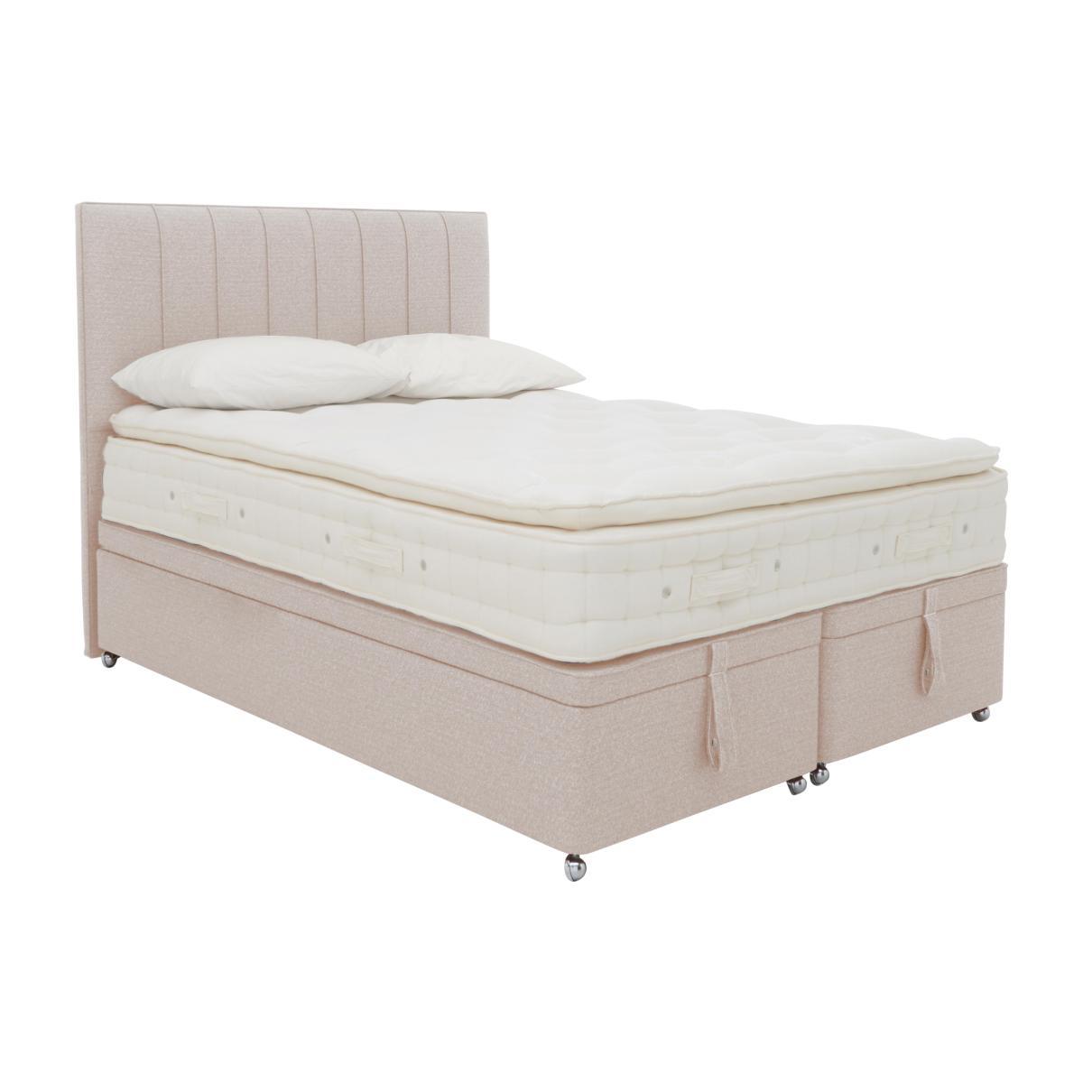 Enjoy luxurious pocket sprung comfort, and a healthier, cooler, fresher night’s sleep with the Hypnos Bespoke Finesse range. The medium comfort, rotatable, pillow top mattresses contain ingenious, innovative 37.5® temperature regulating technology – with a wool-rich comfort layer containing billions of active mineral particles which remove moisture and act as a natural thermostat. Expertly engineered pocket springs and layers of sumptuous fillings including British wool and sustainable cotton add to the all-embracing comfort. The beautifully upholstered divan bases have spacious end-ottoman storage. Exquisitely handcrafted in Britain by the skilled artisans at Hypnos, the Hypnos Bespoke Finesse range comes with a 20 year guarantee. Headboard is an optional extra. Stay fresh and cool with 37.5® temperature regulating technology. Medium feel mattress with 1200 ReActivePro™ 7-turn pocket springs. A luxurious pillow top mattress you don’t need to turn, just rotate regularly. Stylish end-lift ottoman base with plenty of hidden storage space. The Hypnos Bespoke Finesse divan set is luxurious, beautiful, comfortable and practical too. The luxury is its sumptuous layers of fillings, including sustainably sourced cotton and British wool. The beauty is the contemporary style and plush upholstery. The comfort is the innovative 37.5® wool rich comfort layer where billions of active mineral particles remove moisture and act as a thermostat, for a fresh and cooling sleep environment. Finally, the practicality is the spacious, hidden ottoman storage. A generous 31cm deep, the medium feel mattress has 1200 ReActivePro™ expertly engineered, responsive pocket springs, each with 7 active turns and Triple Edge Protection™ for complete support to the very edge of the bed. The cover of the mattress is tactile, soft unbleached cotton made naturally fire-resistant. The platform top, ottoman divan base is built from sturdy FSC®-certified Scandinavian pine upholstered in a choice of plush, fine fabrics. The Hypnos Bespoke collection allows you to pair any mattress with any divan base. The Bespoke Finesse divan set is handcrafted in the UK by Royal Warrant holders Hypnos, and has a 20 year guarantee. Product images are representative. Find out more. Did you know?. The Finesse mattress is a pillow top mattress you don’t need to turn it, just rotate it regularly. Please air the mattress for four hours after delivery to freshen and remove any aroma from storage. It may take time for your mattress to attain its full size once the springs have settled to the correct position. This is due to the mattress being upright during transit. Settlement of fillings and indentations caused by body weight compressing the fillings are natural and not considered defects. This can be minimised by regular rotating.