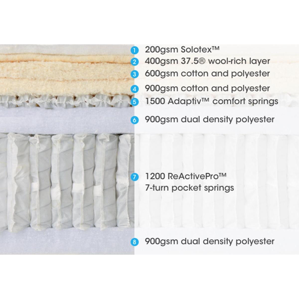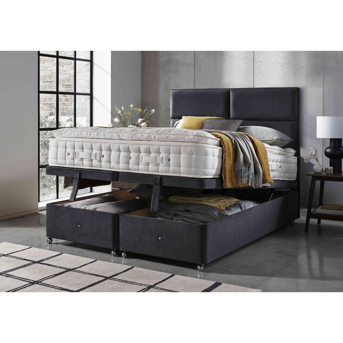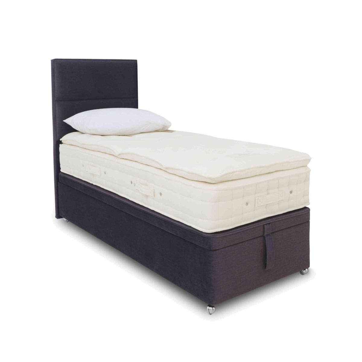 Enjoy luxurious pocket sprung comfort, and a healthier, cooler, fresher night’s sleep with the Hypnos Bespoke Finesse range. The medium comfort, rotatable, pillow top mattresses contain ingenious, innovative 37.5® temperature regulating technology – with a wool-rich comfort layer containing billions of active mineral particles which remove moisture and act as a natural thermostat. Expertly engineered pocket springs and layers of sumptuous fillings including British wool and sustainable cotton add to the all-embracing comfort. The beautifully upholstered divan bases have spacious end-ottoman storage. Exquisitely handcrafted in Britain by the skilled artisans at Hypnos, the Hypnos Bespoke Finesse range comes with a 20 year guarantee. Headboard is an optional extra.• Stay fresh and cool with 37.5® temperature regulating technology • Medium feel mattress with 1200 ReActivePro™ 7-turn pocket springs • A luxurious pillow top mattress you don’t need to turn, just rotate regularly • Stylish end-lift ottoman base with plenty of hidden storage spaceThe Hypnos Bespoke Finesse divan set is luxurious, beautiful, comfortable and practical too. The luxury is its sumptuous layers of fillings, including sustainably sourced cotton and British wool. The beauty is the contemporary style and plush upholstery. The comfort is the innovative 37.5® wool rich comfort layer where billions of active mineral particles remove moisture and act as a thermostat, for a fresh and cooling sleep environment. Finally, the practicality is the spacious, hidden ottoman storage. A generous 31cm deep, the medium feel mattress has 1200 ReActivePro™ expertly engineered, responsive pocket springs, each with 7 active turns and Triple Edge Protection™ for complete support to the very edge of the bed. The cover of the mattress is tactile, soft unbleached cotton made naturally fire-resistant. The platform top, ottoman divan base is built from sturdy FSC®-certified Scandinavian pine upholstered in a choice of plush, fine fabrics. The Hypnos Bespoke collection allows you to pair any mattress with any divan base. The Bespoke Finesse divan set is handcrafted in the UK by Royal Warrant holders Hypnos, and has a 20 year guarantee. Product images are representative. Find out more. Did you know? The Finesse mattress is a pillow top mattress you don’t need to turn it, just rotate it regularly. Please air the mattress for four hours after delivery to freshen and remove any aroma from storage. It may take time for your mattress to attain its full size once the springs have settled to the correct position. This is due to the mattress being upright during transit. Settlement of fillings and indentations caused by body weight compressing the fillings are natural and not considered defects. This can be minimised by regular rotating.