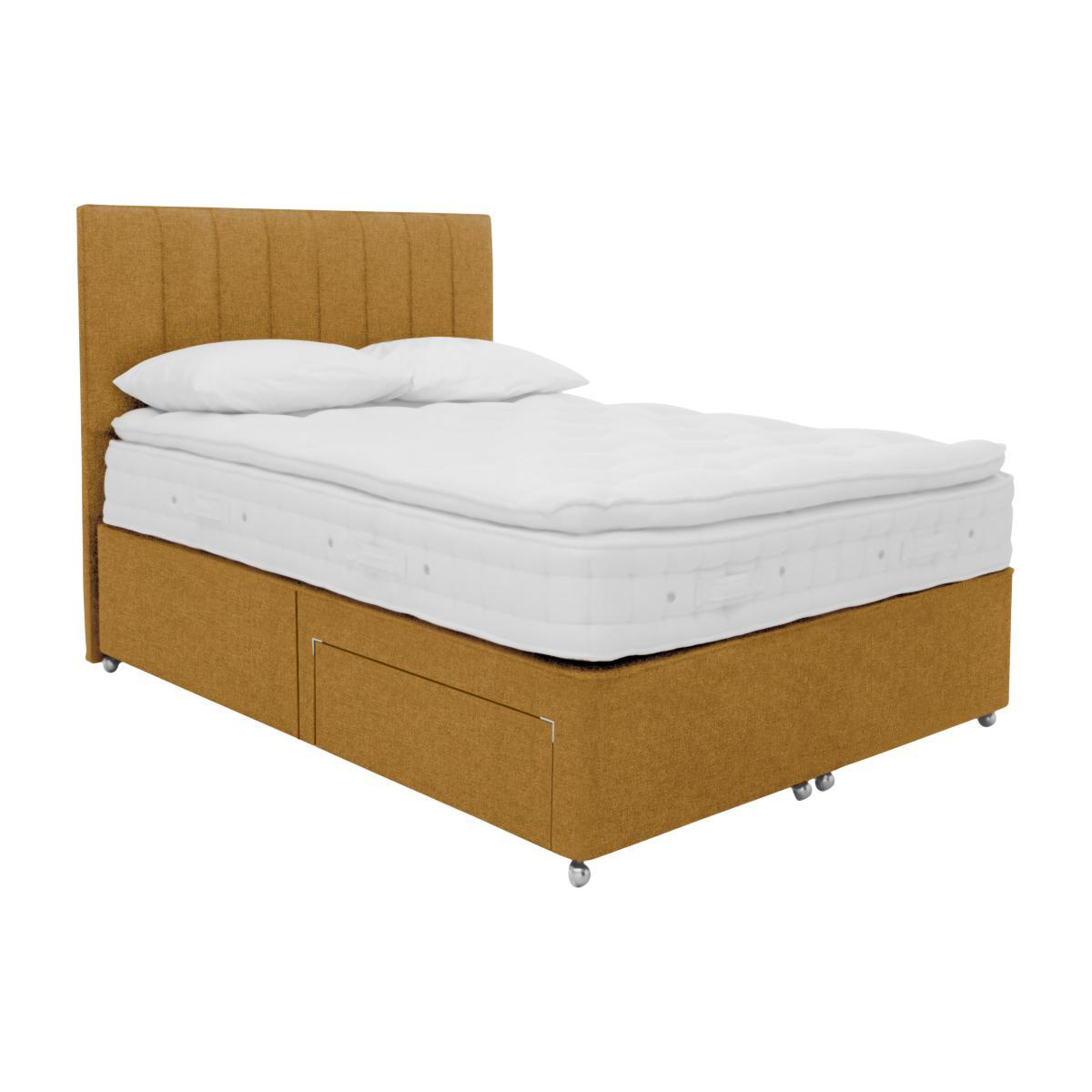 Enjoy luxurious pocket sprung comfort, and a healthier, cooler, fresher night’s sleep with the Hypnos Bespoke Finesse range. The medium comfort, rotatable, pillow top mattresses contain ingenious, innovative 37.5® temperature regulating technology – with a wool-rich comfort layer containing billions of active mineral particles which remove moisture and act as a natural thermostat. Expertly engineered pocket springs and layers of sumptuous fillings including British wool and sustainable cotton add to the all-embracing comfort. The beautifully upholstered divan bases have spacious end-ottoman storage. Exquisitely handcrafted in Britain by the skilled artisans at Hypnos, the Hypnos Bespoke Finesse range comes with a 20 year guarantee. Stay fresh and cool with 37.5® temperature regulating technology. Medium feel mattress with 1200 ReActivePro™ 7-turn pocket springs. A luxurious pillow top mattress you don’t need to turn, just rotate regularly. Stylish divan base with optional storage drawers. Bring home the divan set that’s both luxuriously comfortable and wonderfully practical. The 31 cm deep medium-feel mattress in the Hypnos Bespoke Finesse divan set offers sumptuous layers of fillings, including sustainably sourced cotton and British wool, and also incorporates a 37.5® wool rich comfort layer. This innovative layer has billions of active mineral particles that remove moisture and act as a thermostat for a fresh and cooling sleep environment. This mattress also features 1200 ReActivePro™ pocket springs. These expertly engineered pocket springs each have 7 active turns for superb responsiveness. Triple Edge Protection™ promises complete support to the very edge of the bed. And the naturally fire-resistant mattress cover is made of tactile, soft unbleached cotton. Crafted from sturdy FSC®-certified Scandinavian pine, the platform top divan base is upholstered in a choice of plush, fine fabrics and is offered with optional storage drawers. The Hypnos Bespoke collection allows you to pair any mattress with any divan base. The Bespoke Finesse divan set is handcrafted in the UK by Royal Warrant holders Hypnos, and has a 20 year guarantee. Product images are representative. Find out more. Did you know?. The Finesse mattress is a pillow top mattress you don’t need to turn it, just rotate it regularly. Please air the mattress for four hours after delivery to freshen and remove any aroma from storage. It may take time for your mattress to attain its full size once the springs have settled to the correct position. This is due to the mattress being upright during transit. Settlement of fillings and indentations caused by body weight compressing the fillings are natural and not considered defects. This can be minimised by regular rotating.