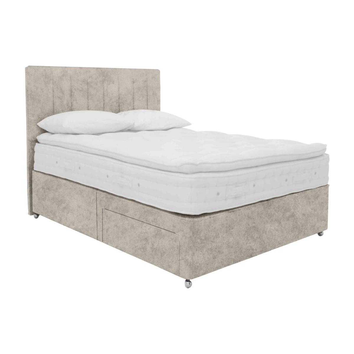 Enjoy luxurious pocket sprung comfort, and a healthier, cooler, fresher night’s sleep with the Hypnos Bespoke Finesse range. The medium comfort, rotatable, pillow top mattresses contain ingenious, innovative 37.5® temperature regulating technology – with a wool-rich comfort layer containing billions of active mineral particles which remove moisture and act as a natural thermostat. Expertly engineered pocket springs and layers of sumptuous fillings including British wool and sustainable cotton add to the all-embracing comfort. The beautifully upholstered divan bases have spacious end-ottoman storage. Exquisitely handcrafted in Britain by the skilled artisans at Hypnos, the Hypnos Bespoke Finesse range comes with a 20 year guarantee.. Stay fresh and cool with 37.5® temperature regulating technology. Medium feel mattress with 1200 ReActivePro™ 7-turn pocket springs. A luxurious pillow top mattress you don’t need to turn, just rotate regularly. Stylish divan base with optional storage drawersBring home the divan set that’s both luxuriously comfortable and wonderfully practical. The 31 cm deep medium-feel mattress in the Hypnos Bespoke Finesse divan set offers sumptuous layers of fillings, including sustainably sourced cotton and British wool, and also incorporates a 37.5® wool rich comfort layer. This innovative layer has billions of active mineral particles that remove moisture and act as a thermostat for a fresh and cooling sleep environment. This mattress also features 1200 ReActivePro™ pocket springs. These expertly engineered pocket springs each have 7 active turns for superb responsiveness. Triple Edge Protection™ promises complete support to the very edge of the bed. And the naturally fire-resistant mattress cover is made of tactile, soft unbleached cotton. Crafted from sturdy FSC®-certified Scandinavian pine, the platform top divan base is upholstered in a choice of plush, fine fabrics and is offered with optional storage drawers. The Hypnos Bespoke collection allows you to pair any mattress with any divan base. Product images are representative. Find out moreDid you know? The Finesse mattress is a pillow top mattress you don’t need to turn it, just rotate it regularly. Please air the mattress for four hours after delivery to freshen and remove any aroma from storage. It may take time for your mattress to attain its full size once the springs have settled to the correct position. This is due to the mattress being upright during transit. Settlement of fillings and indentations caused by body weight compressing the fillings are natural and not considered defects. This can be minimised by regular rotating..