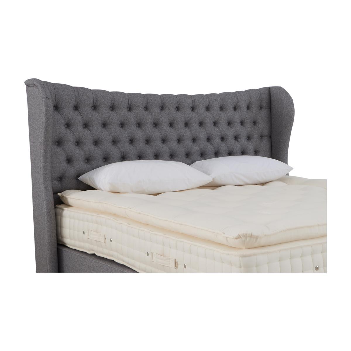 The beautifully designed Hypnos Hurley Headboard makes an instant style statement. We love its grand, curved wings and classic deep-buttoned detailing. Why you’ll love it. The luxury headboard to complement every bedroom. Beautiful, traditional deep button detailing. Dramatic winged sides give it real presence. Available in a wide choice of fabrics and colours. Handmade in Britain by skilled craftspeople exclusively for Furniture Village. What you need to know. Height: 140 cm. Sizes: Super king, king, double, small double, single. Available in a strutted design. Designed to coordinate with Hypnos Bespoke divans and mattresses. Care: Some fabrics can show wear on areas of more use or in direct sunlight.