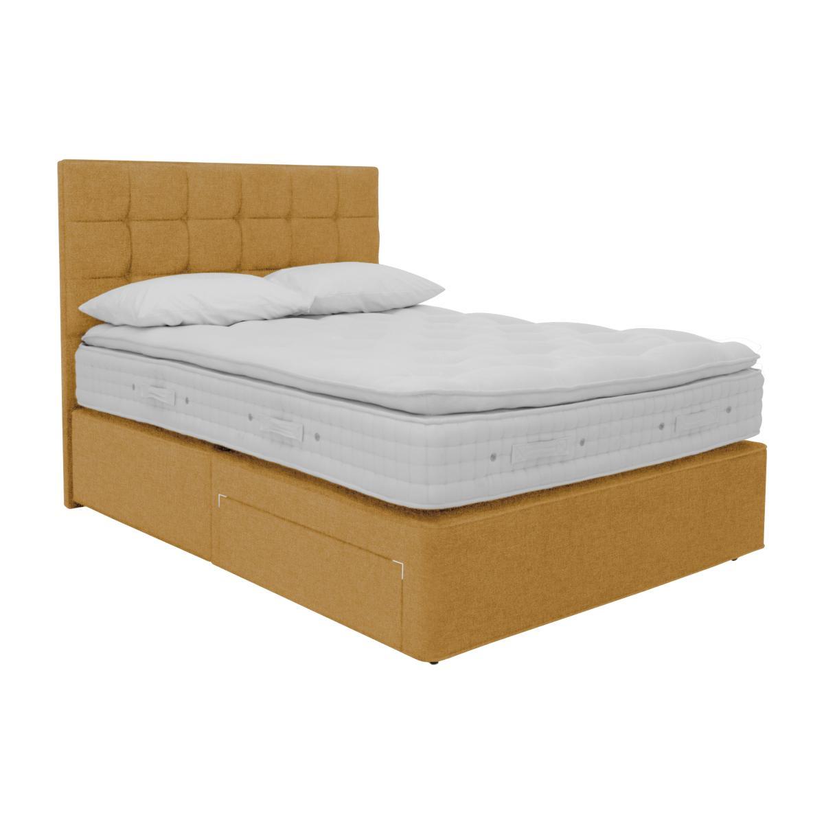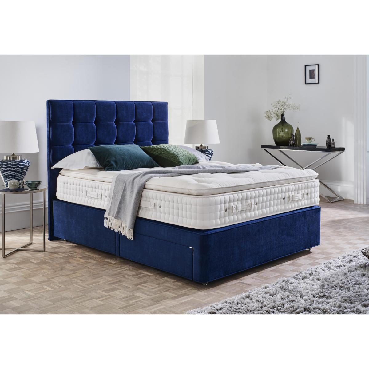 Incredible pocket sprung luxury, rich in naturally temperature regulating British wool with fantastic eco-credentials. No wonder everybody’s loving the Bespoke Luxury range from Hypnos. The rotatable, pillow top mattresses, in a choice of medium, firm or split comfort levels, contain wool responsibly sourced from Red Tractor assured farms with guaranteed traceability. Wool is naturally temperature regulating and antibacterial so you can enjoy a healthier, deeply refreshing night’s sleep, the natural way. The exquisitely upholstered divan bases have a choice of drawer storage. Beautifully crafted in the UK by the skilled artisans at Hypnos, the Hypnos Bespoke Opulence range comes with a 20 year guarantee. Headboard is an optional extra. All the sumptuous comfort of the Hypnos Embrace Opulent Cashmere and Hypnos Embrace Lustrous Alpaca collections – and in a choice of mattress tensions. Feel pampered by luxurious, temperature regulating 100% British wool. Firm or medium feel mattress with 1600 ReActivePro™ 9-turn pocket springs. Pillow top mattress, so you don’t need to turn it, just rotate regularly. Plush upholstered sprung base with a choice of drawer options. The Hypnos Bespoke Luxury divan set more than lives up to its name. The mattress pampers you with sumptuous fillings including sustainably sourced cotton and pure wool, sourced from Red Tractor assured farms with guaranteed traceability. Wool is a natural temperature regulator, transporting heat away from your body when you are too warm and insulating you when you are cold. 30cm deep, the mattress has 1600 ReActivePro™ expertly engineered pocket springs, each with 9 active turns and Triple Edge Protection™ so you are completely supported to the very edge of the bed. Choose your comfort level – medium or firm, or medium on one side and firm on the other. The soft-to-the-touch mattress cover is unbleached cotton made to be naturally fire-resistant. The sprung divan base has a choice of drawer storage. Built from sturdy FSC-certified Scandinavian pine it’s upholstered in a choice of beautiful fabrics. The Hypnos Bespoke collection allows you to pair any mattress with any divan base and headboard. The Bespoke Luxury divan set is beautifully handcrafted in Britain by the skilled artisans at Royal Warrant holders Hypnos. Product images are representative. Find out more. Did you know?. The Luxury mattress is a pillow top mattress, so you don’t need to turn it, just rotate it regularly. Please air the mattress for four hours after delivery to freshen and remove any aroma from storage. It may take time for your mattress to attain its full size once the springs have settled to the correct position. This is due to the mattress being upright during transit. Settlement of fillings and indentations caused by body weight compressing the fillings are natural and not considered defects. This can be minimised by regular rotating.
