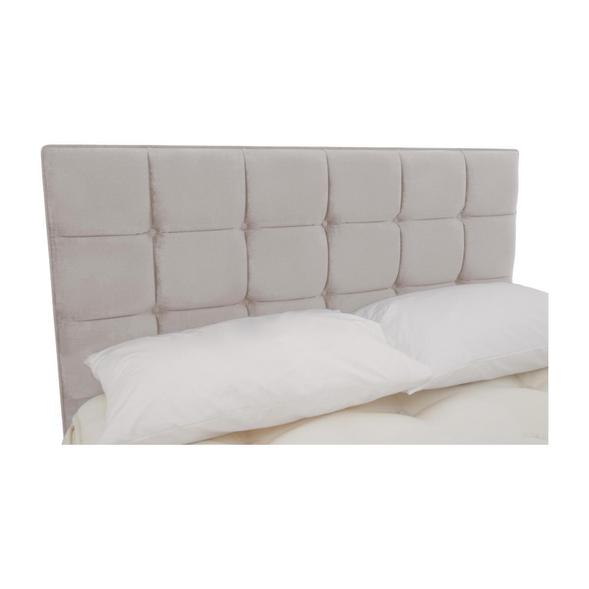 Clean contemporary headboard from Hypnos. Three rows of deeply buttoned panels. In a wide choice of fabrics and colours. The beautiful Hypnos Mia headboard is deeply upholstered, exquisitely handcrafted in the UK by Royal Warrant holders Hypnos. Wide and tall it makes a real statement, reaching right to the floor. In style it’s chic and contemporary, with three rows of deeply buttoned panels creating a comfortably cushioned surface to rest against. The headboard fixes with ease to the beautiful Hypnos Bespoke collection divan beds, or to any standard divan base.