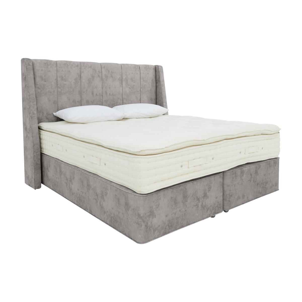 With a sprung-edge base and superb pocket sprung pillowtop mattress, this Hypnos divan set is the perfect combination of superior support and luxury comfort. Why you'll love it With a sprung-edge edge base and superb mattress, this divan promises wonderful support. Mattress delivers pocket spring comfort with a cushioning pillow top. Its ReActivePro™ pocket springs have up to 10 active turns for a more responsive feel. Layered with generous layers of temperature-regulating natural fillings including latex.. Sprung pillowtop is filled with Red Tractor-assured wool, and all-natural nettle and cotton. Triple Edge Protection™ and 4 rows of hand side stitching for superior edge support. In medium and firm tension. Dual medium/firm tension available in king and super king sizes. Sprung-edge divan base for exceptional edge-to-edge mattress support. Choice of storage options including drawers, ottoman and hideaway base. In a huge choice of colours to match any decor. Platform-top base also available. Handcrafted in England and only at Furniture Village. This divan set is part of the Hypnos Bespoke Monarch range. What you need to know Headboard is the Hypnos Longwick Floor Standing Headboard, available separately. Mattress type: Pocket spring. Firmness: Medium and firm. Dual tension available in king and super king sizes. Springs: 1800 in king size. Pillow top:Yes. Fillings: Latex, polyester. Cover: Damask. Requires turning: No. Base type: Sprung-edge and platform-top with optional storage. Sizes: Double, king, super king. Mattress care:Air for 4 hours before using to remove any odour. Allow at least 4 hours for springs to settle and for mattress to attain its full size. Indentations caused by settlement of fillings or body weight are normal and are not considered defects. If used on a slatted bed frame, the space between slats must be no wider than 7.5 cm. Spaces wider than this may cause excess dipping of the mattress and invalidate the guarantee. Always use a mattress protector. Rotate regularly. Divan base care: Clean upholstery weekly using a soft brush or vacuum with the curtain attachment. Professional cleaning advised for oil- and grease-based stains. Some fabrics can show wear on areas of more use or in direct sunlight.