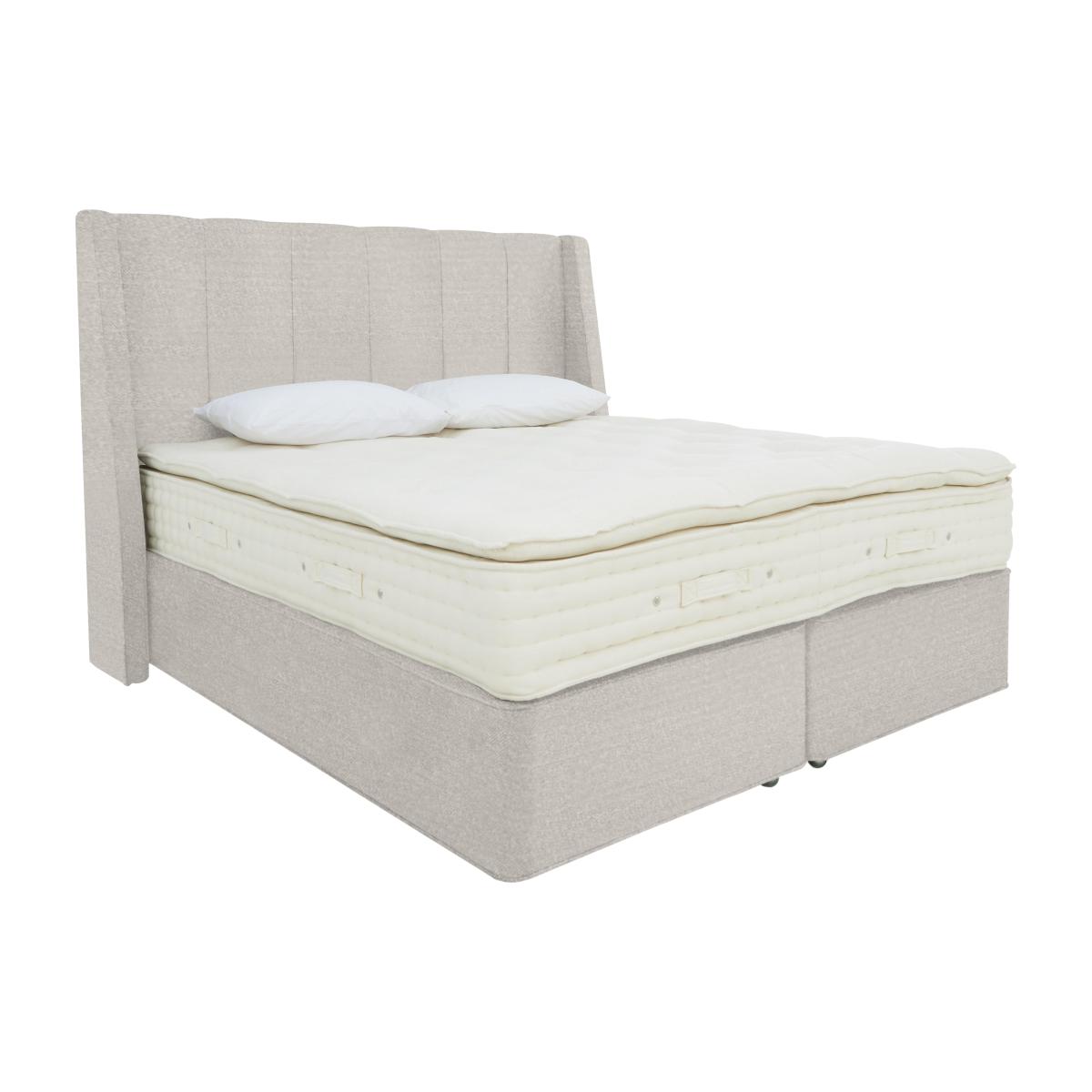 With a sprung-edge base and superb pocket sprung pillowtop mattress, this Hypnos divan set is the perfect combination of superior support and luxury comfort. Why you'll love it With a sprung-edge edge base and superb mattress, this divan promises wonderful support. Mattress delivers pocket spring comfort with a cushioning pillow top. Its ReActivePro™ pocket springs have up to 10 active turns for a more responsive feel. Layered with generous layers of temperature-regulating natural fillings including latex.. Sprung pillowtop is filled with Red Tractor-assured wool, and all-natural nettle and cotton. Triple Edge Protection™ and 4 rows of hand side stitching for superior edge support. In medium and firm tension. Dual medium/firm tension available in king and super king sizes. Sprung-edge divan base for exceptional edge-to-edge mattress support. Choice of storage options including drawers, ottoman and hideaway base. In a huge choice of colours to match any decor. Platform-top base also available. Handcrafted in England and only at Furniture Village. This divan set is part of the Hypnos Bespoke Monarch range. What you need to know Headboard is the Hypnos Longwick Floor Standing Headboard, available separately. Mattress type: Pocket spring. Firmness: Medium and firm. Dual tension available in king and super king sizes. Springs: 1800 in king size. Pillow top:Yes. Fillings: Latex, polyester. Cover: Damask. Requires turning: No. Base type: Sprung-edge and platform-top with optional storage. Sizes: Double, king, super king. Mattress care:Air for 4 hours before using to remove any odour. Allow at least 4 hours for springs to settle and for mattress to attain its full size. Indentations caused by settlement of fillings or body weight are normal and are not considered defects. If used on a slatted bed frame, the space between slats must be no wider than 7.5 cm. Spaces wider than this may cause excess dipping of the mattress and invalidate the guarantee. Always use a mattress protector. Rotate regularly. Divan base care: Clean upholstery weekly using a soft brush or vacuum with the curtain attachment. Professional cleaning advised for oil- and grease-based stains. Some fabrics can show wear on areas of more use or in direct sunlight.