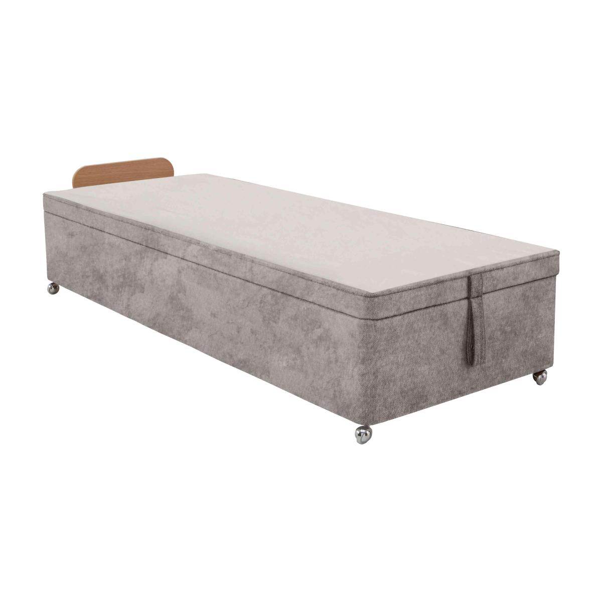 Looking for extra bedroom storage? We’ve found it – under the top of this beautifully handcrafted upholstered divan base from Hypnos. A Furniture Village exclusive. Why you'll love it Luxury handcrafted divan base by Hypnos. Understated contemporary design. Traditional solid top divan base for a firmer feel. Features a large end-lift ottoman storage space. Hydraulic springs ensure easy access to the storage compartment. Made from FSC-certified timber and 100% sustainable – it’s even recyclable. Choose from a huge range of upholstery fabrics and colours. Available in all standard bed sizes from single to super king. Designed to pair with a Hypnos headboard. Handmade in Britain by skilled craftspeople using time-honoured techniques. Exclusively available at Furniture Village. What you need to know Headboard shown is available separately. Mattress not included. Compatible with floorstanding and strutted headboards. Clean weekly using a soft brush or vacuum with the curtain attachment. Annual professional cleaning is recommended. Some fabrics can show wear on areas of more use or in direct sunlight. Part of the Hypnos Bespoke collection of beautiful divan bases.