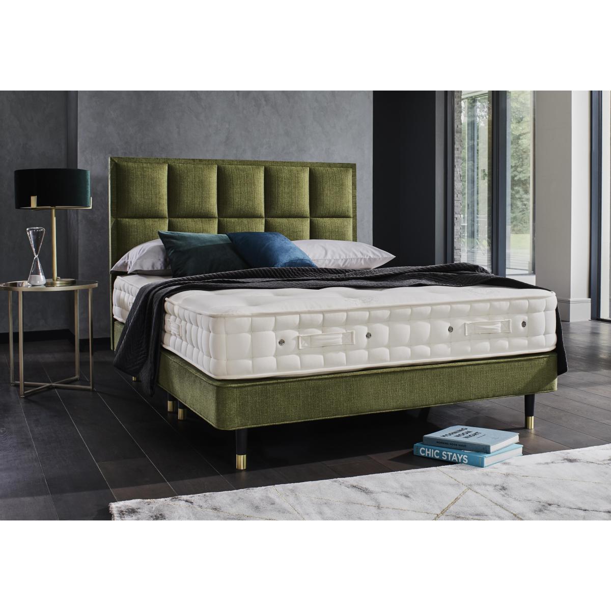 Contemporary bedstead style meets time-honoured craftsmanship. This shallow divan base is sprung for comfort and is exclusively available at Furniture Village. Made by Hypnos. Why you'll love it. Luxury handcrafted divan base by Hypnos. Understated contemporary design. Shallow base on legs has a floating bedstead look. Pocket sprung support for a less firm feel. Made from FSC-certified timber and 100% sustainable – it’s even recyclable. Choose from a huge range of upholstery fabrics and colours. Available in all standard bed sizes from single to super king. Designed to pair with a Hypnos headboard. Handmade in Britain by skilled craftspeople using time-honoured techniques. Exclusively available at Furniture Village. What you need to know. Headboard shown is available separately. Mattress not included. Compatible with shallow base headboards. Clean weekly using a soft brush or vacuum with the curtain attachment. Annual professional cleaning is recommended. Some fabrics can show wear on areas of more use or in direct sunlight. Part of the Hypnos Bespoke collection of beautiful divan bases.