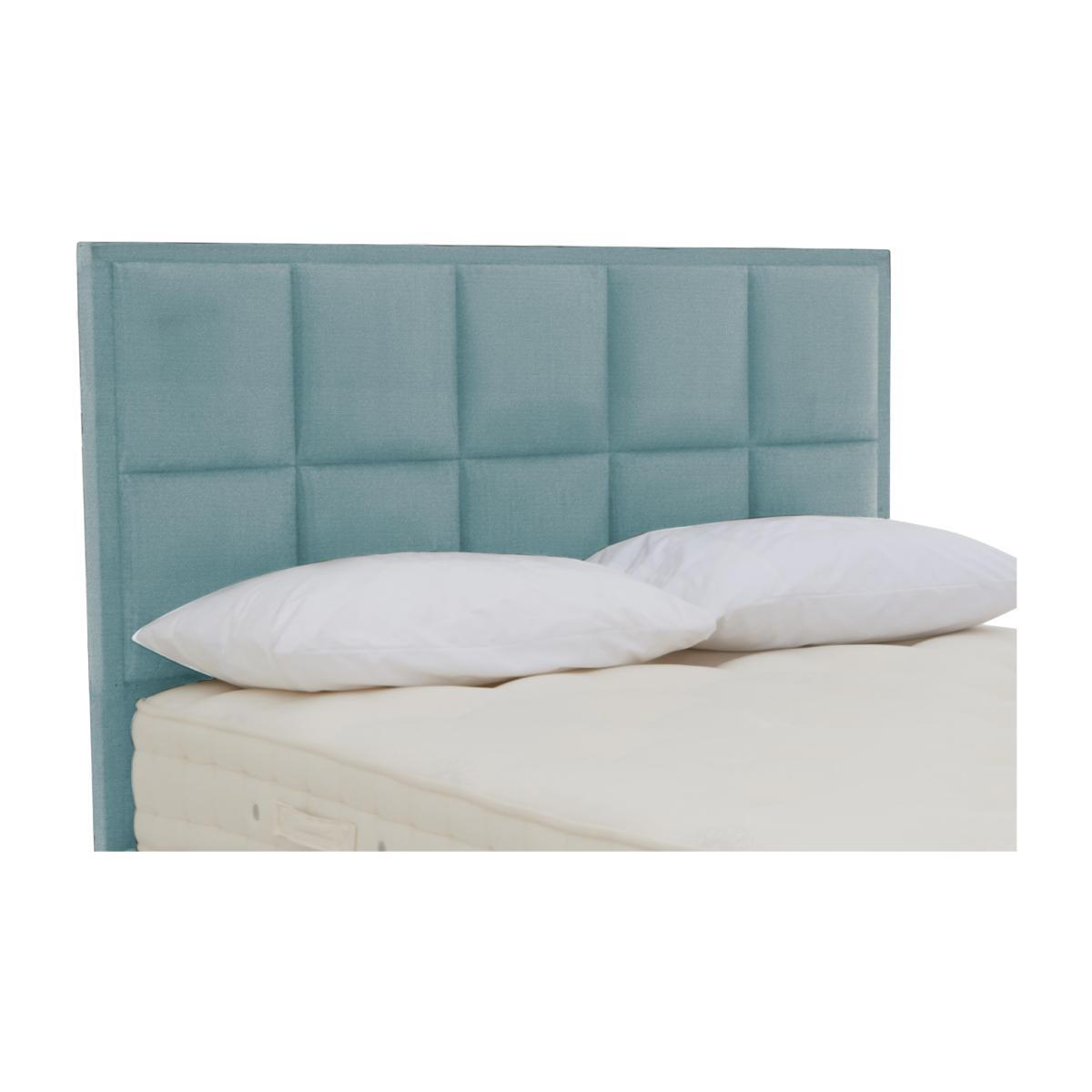 Striking contemporary headboard from Hypnos. Two rows of five cushioned panels. Stylish matching border. The stunning Hypnos Riley headboard is lavishly upholstered, with two rows of cushioned panels set within a border upholstered in either same fabric as the panels as standard, or in the contrasting black fabric on request. You can also get in touch for a contrasting black border or a standard height design. The headboard coordinates with and fixes with ease to the beautiful Hypnos Bespoke collection. Shallow divan bases. Beautifully handcrafted by Royal Warrant holders Hypnos.