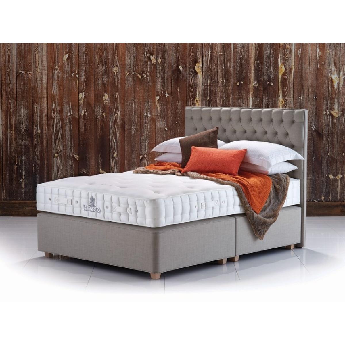 A beautifully upholstered Hypnos Eleanor Euro Slim Headboard provides a bold silhouetted statement to frame your bed, creating a stunning focal point and finishing touch to both the bed and the bedroom. A contemporary headboard featuring deep-buttoned detailing with a hand piped border. The headboard is upholstered in a range of modern colours and textures. Slim Fit Floor standing - The Slim fit design extends from the height of the headboard to the floor and aligns with the width of your mattress and divan. Key Features: Approved by the National Bed Federation (NBF) ensuring it has been manufactured to the highest UK standards Deep buttoned chesterfield style Available in a range of fabrics and colours Made from FSC certified timber Available in Small Single, Single, Small Double, Double, King and Superking. Dimensions: Small Single – W 75cm (2ft6) x H 132cm (52’’) x D 9cm (3.5’’) Single – W 90cm (3ft) x H 132cm (52’’) x D 9cm (3.5’’) Small Double – W 120cm (4ft) x H 132cm (52’’) x D 9cm (3.5’’) Double – W 135cm (4ft6) x H 132cm (52’’) x D 9cm (3.5’’) King Size – W 150cm (5ft) x H 132cm (52’’) x D 9cm (3.5’’) Super King Size – W 180cm (6ft) x H 132cm (52’’) x D 9cm (3.5’’) All screens vary in colour reproduction and whilst every effort has been made to display the colour as accurately as possible it is for guidance only.