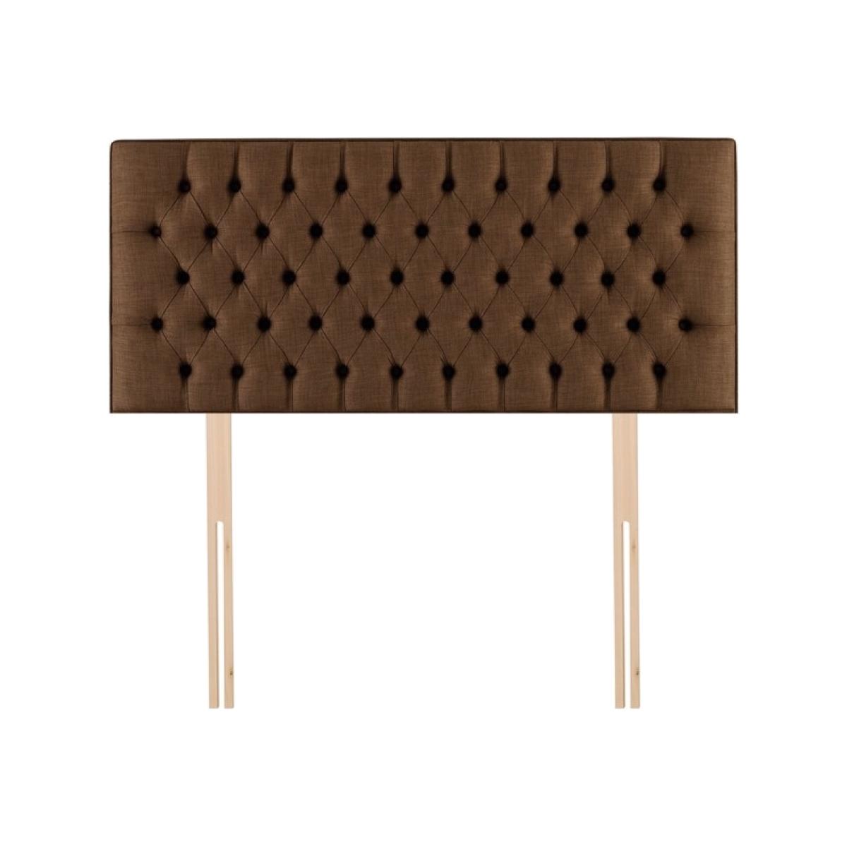 A beautifully upholstered Hypnos Eleanor Strutted Headboard provides a bold silhouetted statement to frame your bed, creating a stunning focal point and finishing touch to both the bed and the bedroom. A contemporary headboard featuring deep-buttoned detailing with a hand piped border. The headboard is upholstered in a range of modern colours and textures. Bed fixing on struts - The bed fixing on struts design uses the traditional headboard design with 2 wooden fixing posts attached to the back. Key Features: Approved by the National Bed Federation (NBF) ensuring it has been manufactured to the highest UK standards Deep buttoned chesterfield style Available in a range of fabrics and colours Made from FSC certified timber Available in Small Single, Single, Small Double, Double, King and Superking. Dimensions: Small Single – W 75cm (2ft6) x H 77cm (30’’) x D 9cm (3.5’’) Single – W 90cm (3ft) x H 77cm (30’’) x D 9cm (3.5’’) Small Double – W 120cm (4ft) x H 77cm (30’’) x D 9cm (3.5’’) Double – W 135cm (4ft6) x H 77cm (30’’) x D 9cm (3.5’’) King Size – W 150cm (5ft) x H 77cm (30’’) x D 9cm (3.5’’)) Super King Size – W 180cm (6ft) x H 77cm (30’’) x D 9cm (3.5’’) All screens vary in colour reproduction and whilst every effort has been made to display the colour as accurately as possible it is for guidance only