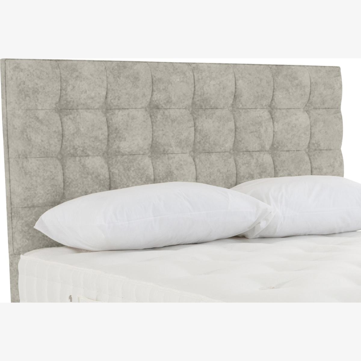 This statement floor standing headboard has a stylish contemporary geometric look thanks to its rows and rows of neat buttoning. Part of our Hypnos Bespoke collection. Why you'll love it Beautiful floor standing headboard combines comfort with statement design. Contemporary luxury style. Precise buttoning creates a geometric pattern of hand-pleated squares. Edges are neatly finished with piping. Floor standing – it’s cushioned and upholstered from top to bottom. Wide choice of high-quality woven upholstery fabrics. In single, double, small double, king and super king sizes. Beautifully crafted in the UK. Only at Furniture Village. This floor standing headboard is part of the Hypnos Bespoke collection. What you need to know Compatible with all standard Hypnos divan bases. Also available as a strutted headboard. Some fabrics can show wear on areas of more use or in direct sunlight. Clean regularly using a soft brush or vacuum with the curtain attachment. Deal with any spills promptly. Professional cleaning advised for oil- and grease-based stains. Please read our upholstery care guide for more advice.