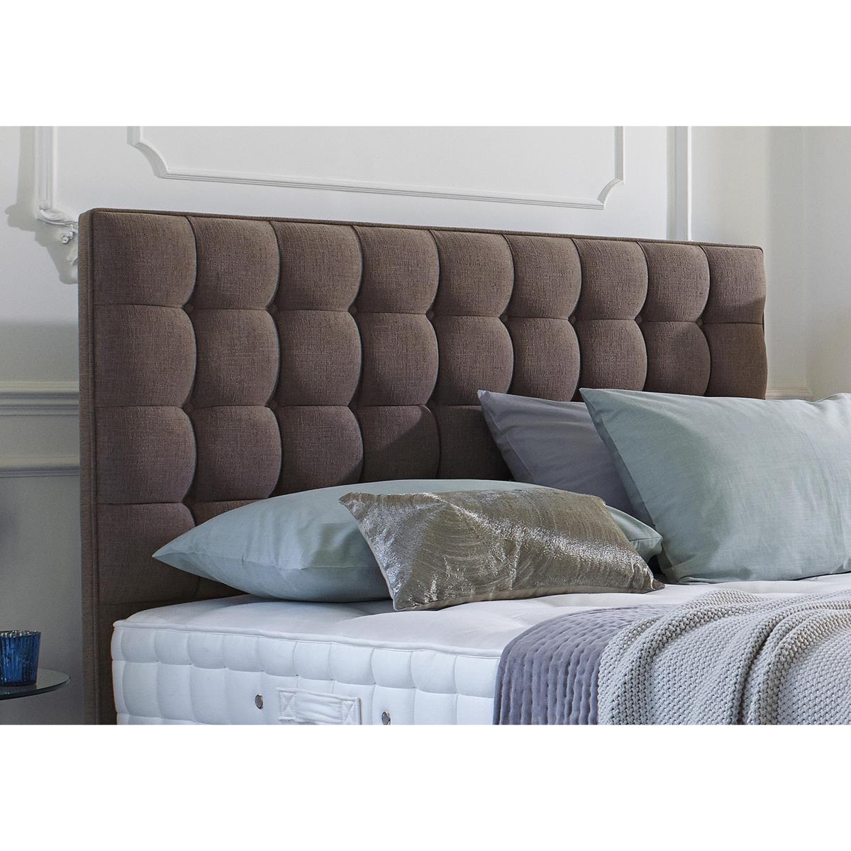 This statement floor standing headboard has a stylish contemporary geometric look thanks to its rows and rows of neat buttoning. Part of our Hypnos Bespoke collection. Why you'll love it Beautiful floor standing headboard combines comfort with statement design. Contemporary luxury style. Precise buttoning creates a geometric pattern of hand-pleated squares. Edges are neatly finished with piping. Floor standing – it’s cushioned and upholstered from top to bottom. Wide choice of high-quality woven upholstery fabrics. In single, double, small double, king and super king sizes. Beautifully crafted in the UK. Only at Furniture Village. This floor standing headboard is part of the Hypnos Bespoke collection. What you need to know Compatible with all standard Hypnos divan bases. Also available as a strutted headboard. Some fabrics can show wear on areas of more use or in direct sunlight. Clean regularly using a soft brush or vacuum with the curtain attachment. Deal with any spills promptly. Professional cleaning advised for oil- and grease-based stains. Please read our upholstery care guide for more advice.