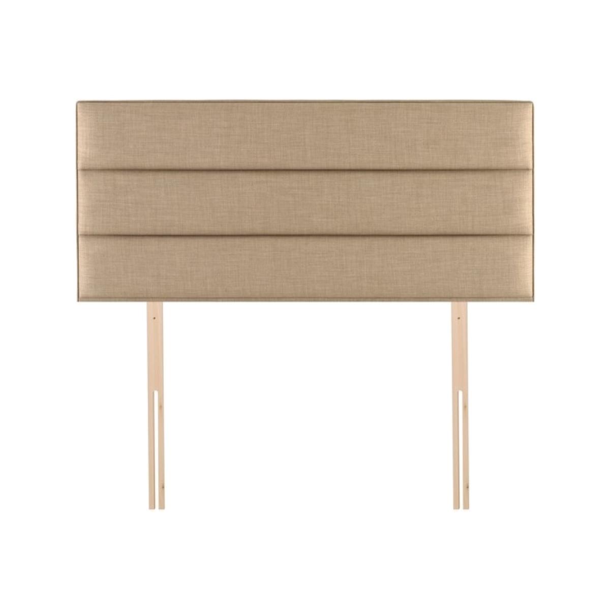 The Josephine headboard by Hypnos is a contemporary design that features 3 deep cushioned horizontal panels for the very best in comfort when sitting up or reading in bed. Available in a great selection of fabric choices, you can either match the colour of your divan base material or select a contrasting colour for a bolder look. The choice is yours! Available in two designs: Bed fixing on struts - The bed fixing on struts design uses the traditional headboard design with 2 wooden fixing posts attached to the back. Slim Fit Floor standing - The Slim fit design extends from the height of the headboard to the floor and aligns with the width of your mattress and divan. FEATURES: Full length Euro-Slim Headboard, or Bed Fixing Strutted Design Approved by the National Bed Federation (NBF) ensuring it has been manufactured to the highest UK standards Available in a range of fabrics and colours Made from FSC certified timber Available in Small Single, Single, Small Double, Double, King and Superking. DIMENSIONS: Floor Standing Headboard: Height 132cm x Depth 9cm Strutted Headboard:Height 66cm x Depth 9cm All screens vary in colour reproduction and whilst every effort has been made to display the colour as accurately as possible it is for guidance only.