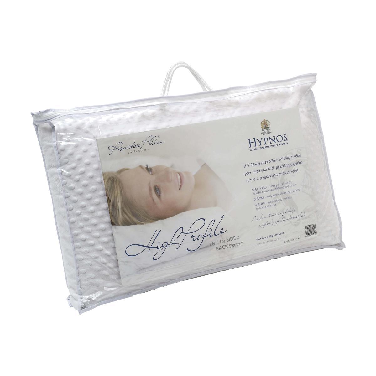 Comfortable latex pillow made by Royal Warrant-holders Hypnos. High-profile shape is ideal for back and side sleepers. Made from durable, anti-bacterial natural latex. Provides instant, pressure-relieving support for head and neck. Helps wick moisture and regulate body temperature. Moulded with air pockets for breathability. Removable plush cover. Dimensions. Width: 77cm (30 inches). Height: 42cm (17 inches). Please note. When you first remove your new pillow from its packaging you may notice a faint odour. This is perfectly harmless and will dissipate after airing. We are unable to refund or exchange pillows due to hygiene reasons.