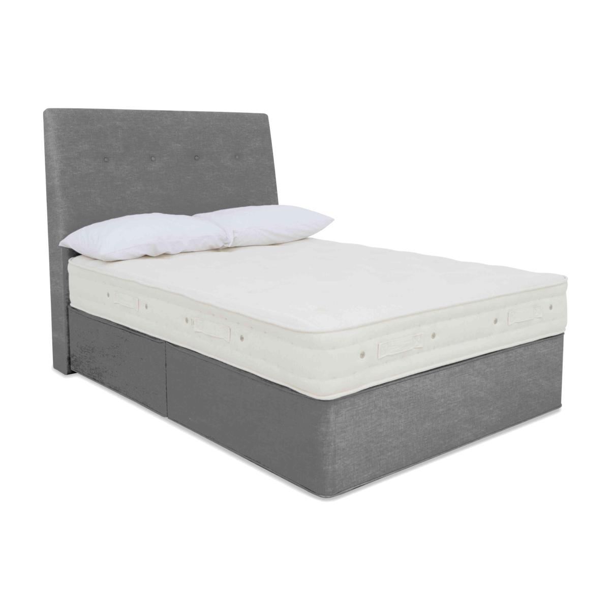 Luxury comfort and firm support come together beautifully in the Hypnos Luxury Firm collection. Alongside superior craftsmanship and exceptional quality, this collection gives firm-mattress seekers something else – outstanding choice. The collection comprises four ranges – Hypnos Luxury Firm 1, Hypnos Luxury Firm 2, Hypnos Luxury Firm 3 and Hypnos Luxury Firm 4 – each of which offers a different combination of firm or extra-firm support and sumptuous comfort with layers of ReActive™ 6-turn pocket springs, cooling British-certified wool, and all-natural fillings. Shop the complete Luxury Firm collection for mattresses and divan sets with ottoman storage, hideaway storage and optional drawers. Handcrafted in the UK exclusively for Furniture Village. Enjoy firm-feel mattress comfort, a cooler night’s sleep and a more stylish bedroom with this Hypnos divan set. Only at Furniture Village. Why you'll love it This beautiful storage divan set includes a wonderfully firm mattress. A unique combination of luxurious comfort and firm support. 1,000 ReActive™ 6-turn pocket springs in king size respond to your shape and weight. Layers of temperature-regulating wool and comfort fibres. Chemical-free linen and cotton sleep surface. Traditionally crafted with tufting and finished by hand. Set on a supportive platform top base with optional storage drawers. Wide choice of upholstery fabrics. Handmade in the UK by Hypnos exclusively for Furniture Village. This divan set is part of the Hypnos Luxury Firm 1 range. What you need to know Mattress type: Pocket spring. Depth: 25 cm. Firmness: Firm. Springs: 1,000 ReActive™ 6-turn pocket springs in king size. Pillow top: No. Fillings: British certified wool, e. Olus™ recycled comfort fibres. Cover: Cotton, flax. Requires turning: No. Base type: Platform top with optional storage drawers. Not all drawer options are available in all sizes. Sizes: Single, small double, double, king, super king. Mattress care:Air for 4 hours before using to remove any odour. Allow at least 4 hours for springs to settle and for mattress to attain its full size. Indentations caused by settlement of fillings or body weight are normal and are not considered defects. If used on a slatted bed frame, the space between slats must be no wider than 7.5 cm. Spaces wider than this may cause excess dipping of the mattress and invalidate the guarantee. Always use a mattress protector. Rotate regularly. Divan base care: Clean upholstery weekly using a soft brush or vacuum with the curtain attachment. Professional cleaning advised for oil- and grease-based stains. Some fabrics can show wear on areas of more use or in direct sunlight.