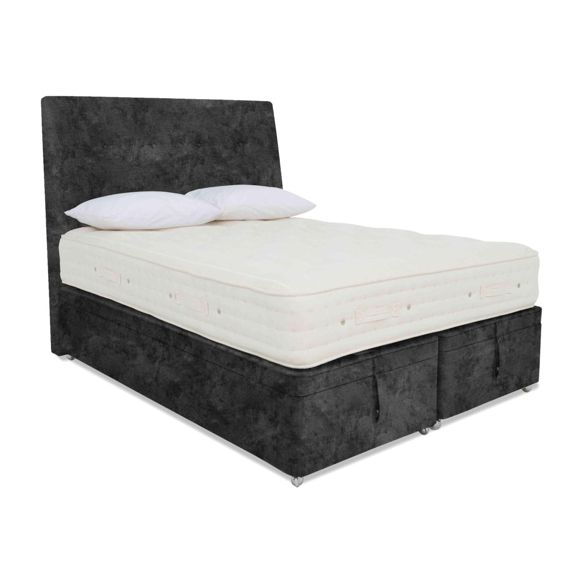 Luxury comfort and firm support come together beautifully in the Hypnos Luxury Firm collection. Alongside superior craftsmanship and exceptional quality, this collection gives firm-mattress seekers something else – outstanding choice. The collection comprises four ranges – Hypnos Luxury Firm 1, Hypnos Luxury Firm 2, Hypnos Luxury Firm 3 and Hypnos Luxury Firm 4 – each of which offers a different combination of firm or extra-firm support and sumptuous comfort with layers of ReActive™ 6-turn pocket springs, cooling British-certified wool, and all-natural fillings. Shop the complete Luxury Firm collection for mattresses and divan sets with ottoman storage, hideaway storage and optional drawers. Handcrafted in the UK exclusively for Furniture Village. The firm-feel mattress you’ve been craving plus the extra-large storage space your bedroom needs – it’s all here in this Hypnos ottoman divan set. Only at Furniture Village. Why you'll love it Enjoy storage, style and firm-feel support with this handmade ottoman divan set. A unique combination of luxurious comfort and firm support. 1,000 ReActive™ 6-turn pocket springs in king size respond to your shape and weight. Layers of temperature-regulating wool and comfort fibres. Chemical-free linen and cotton sleep surface. Traditionally crafted with tufting and finished by hand. Set on a supportive platform top base with spacious ottoman storage. Wide choice of upholstery fabrics. Handmade in the UK by Hypnos exclusively for Furniture Village. This ottoman divan set is part of the Hypnos Luxury Firm 1 range. What you need to know Mattress type: Pocket spring. Depth: 25 cm. Firmness: Firm. Springs: 1,000 ReActive™ 6-turn pocket springs in king size. Pillow top: No. Fillings: British certified wool, e. Olus™ recycled comfort fibres. Cover: Cotton, flax. Requires turning: No. Base type: Platform top with ottoman storage. Sizes: Single, double, king, super king. Mattress care:Air for 4 hours before using to remove any odour. Allow at least 4 hours for springs to settle and for mattress to attain its full size. Indentations caused by settlement of fillings or body weight are normal and are not considered defects. If used on a slatted bed frame, the space between slats must be no wider than 7.5 cm. Spaces wider than this may cause excess dipping of the mattress and invalidate the guarantee. Always use a mattress protector. Rotate regularly. Divan base care: Clean upholstery weekly using a soft brush or vacuum with the curtain attachment. Professional cleaning advised for oil- and grease-based stains. Some fabrics can show wear on areas of more use or in direct sunlight.