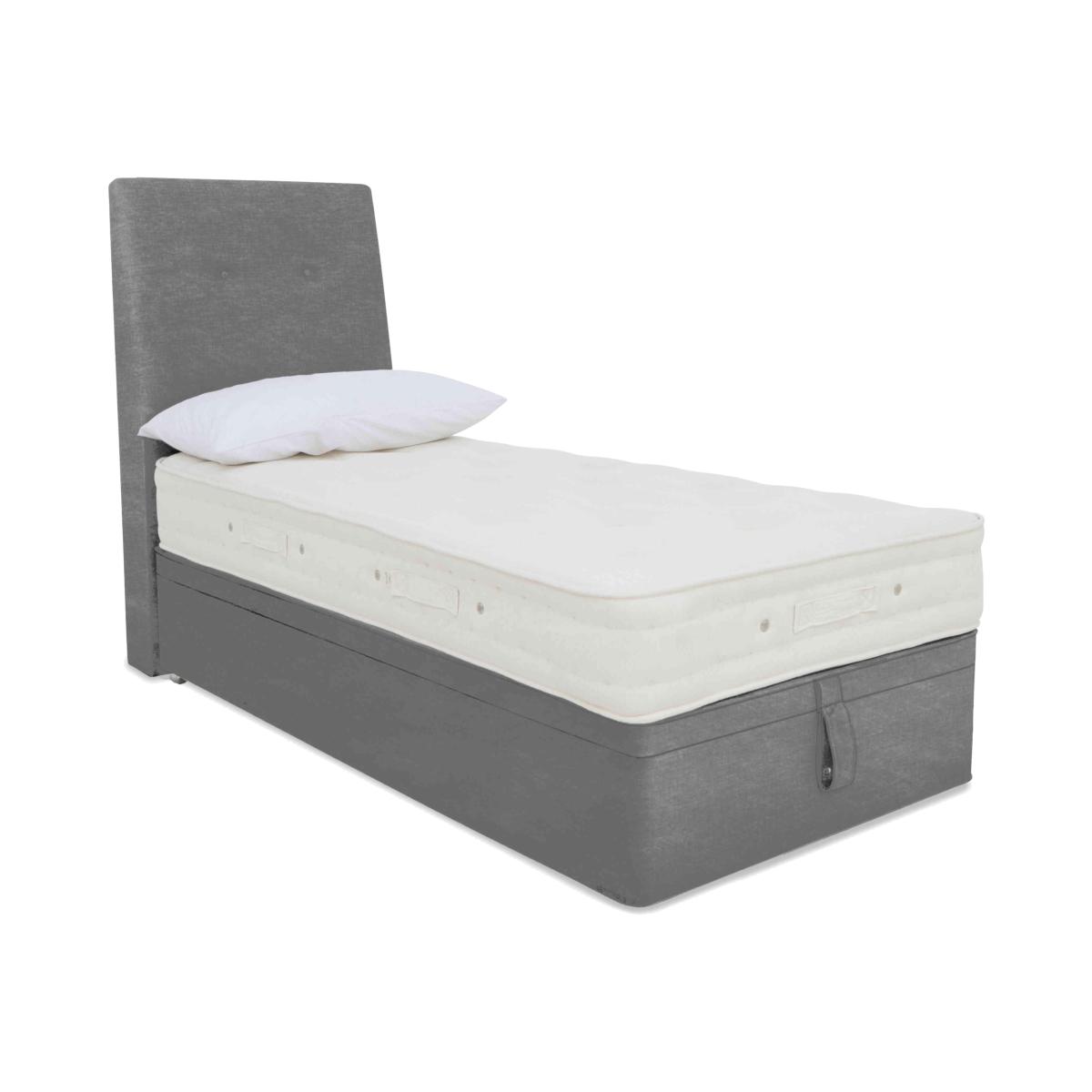 Luxury comfort and firm support come together beautifully in the Hypnos Luxury Firm collection. Alongside superior craftsmanship and exceptional quality, this collection gives firm-mattress seekers something else – outstanding choice. The collection comprises four ranges – Hypnos Luxury Firm 1, Hypnos Luxury Firm 2, Hypnos Luxury Firm 3 and Hypnos Luxury Firm 4 – each of which offers a different combination of firm or extra-firm support and sumptuous comfort with layers of ReActive™ 6-turn pocket springs, cooling British-certified wool, and all-natural fillings. Shop the complete Luxury Firm collection for mattresses and divan sets with ottoman storage, hideaway storage and optional drawers. Handcrafted in the UK exclusively for Furniture Village. The firm-feel mattress you’ve been craving plus the extra-large storage space your bedroom needs – it’s all here in this Hypnos ottoman divan set. Only at Furniture Village. Why you'll love it Enjoy storage, style and firm-feel support with this handmade ottoman divan set. A unique combination of luxurious comfort and firm support. 1,000 ReActive™ 6-turn pocket springs in king size respond to your shape and weight. Layers of temperature-regulating wool and comfort fibres. Chemical-free linen and cotton sleep surface. Traditionally crafted with tufting and finished by hand. Set on a supportive platform top base with spacious ottoman storage. Wide choice of upholstery fabrics. Handmade in the UK by Hypnos exclusively for Furniture Village. This ottoman divan set is part of the Hypnos Luxury Firm 1 range. What you need to know Mattress type: Pocket spring. Depth: 25 cm. Firmness: Firm. Springs: 1,000 ReActive™ 6-turn pocket springs in king size. Pillow top: No. Fillings: British certified wool, e. Olus™ recycled comfort fibres. Cover: Cotton, flax. Requires turning: No. Base type: Platform top with ottoman storage. Sizes: Single, double, king, super king. Mattress care:Air for 4 hours before using to remove any odour. Allow at least 4 hours for springs to settle and for mattress to attain its full size. Indentations caused by settlement of fillings or body weight are normal and are not considered defects. If used on a slatted bed frame, the space between slats must be no wider than 7.5 cm. Spaces wider than this may cause excess dipping of the mattress and invalidate the guarantee. Always use a mattress protector. Rotate regularly. Divan base care: Clean upholstery weekly using a soft brush or vacuum with the curtain attachment. Professional cleaning advised for oil- and grease-based stains. Some fabrics can show wear on areas of more use or in direct sunlight.
