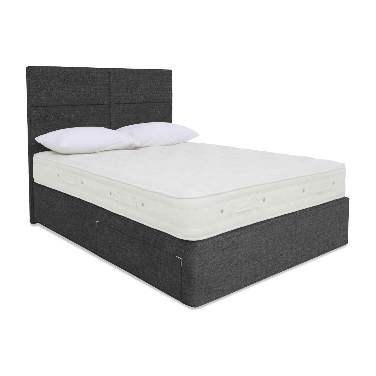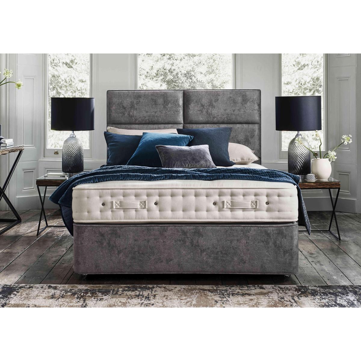 Luxury comfort and firm support come together beautifully in the Hypnos Luxury Firm collection. Alongside superior craftsmanship and exceptional quality, this collection gives firm-mattress seekers something else – outstanding choice. The collection comprises four ranges – Hypnos Luxury Firm 1, Hypnos Luxury Firm 2, Hypnos Luxury Firm 3 and Hypnos Luxury Firm 4 – each of which offers a different combination of firm or extra-firm support and sumptuous comfort with layers of ReActive™ 6-turn pocket springs, cooling British-certified wool, and all-natural fillings. Shop the complete Luxury Firm collection for mattresses and divan sets with ottoman storage, hideaway storage and optional drawers. Handcrafted in the UK exclusively for Furniture Village. If you sleep better on an extra-firm mattress, you’ll get that and so much more when you choose this stylish divan set by Hypnos. Only at Furniture Village. Why you'll love it True support, luxury feel – that’s this lovely Hypnos divan set with mattress. A unique combination of luxurious comfort and extra-firm support. 1,200 ReActive™ 6-turn pocket springs in king size respond to your shape and weight. Layers of temperature-regulating wool, cotton, hemp and comfort fibres. Chemical-free linen and cotton sleep surface. Traditionally crafted with tufting and 2 rows of side stitching. Set on a supportive platform top base with optional storage drawers. Wide choice of upholstery fabrics. Handmade in the UK by Hypnos exclusively for Furniture Village. This divan set is part of the Hypnos Luxury Firm 2 range. What you need to know Mattress type: Pocket spring. Depth: 27 cm. Firmness: Extra firm. Springs: 1,200 ReActive™ 6-turn pocket springs in king size. Pillow top: No. Fillings: British certified wool; responsibly sourced cotton and hemp; e. Olus™ recycled comfort fibres. Cover: Cotton, flax. Requires turning: No. Base type: Platform top with optional storage drawers. Not all drawer options are available in all sizes. Sizes: Single, small double, double, king, super king. Mattress care:Air for 4 hours before using to remove any odour. Allow at least 4 hours for springs to settle and for mattress to attain its full size. Indentations caused by settlement of fillings or body weight are normal and are not considered defects. If used on a slatted bed frame, the space between slats must be no wider than 7.5 cm. Spaces wider than this may cause excess dipping of the mattress and invalidate the guarantee. Always use a mattress protector. Rotate regularly. Divan base care: Clean upholstery weekly using a soft brush or vacuum with the curtain attachment. Professional cleaning advised for oil- and grease-based stains. Some fabrics can show wear on areas of more use or in direct sunlight.