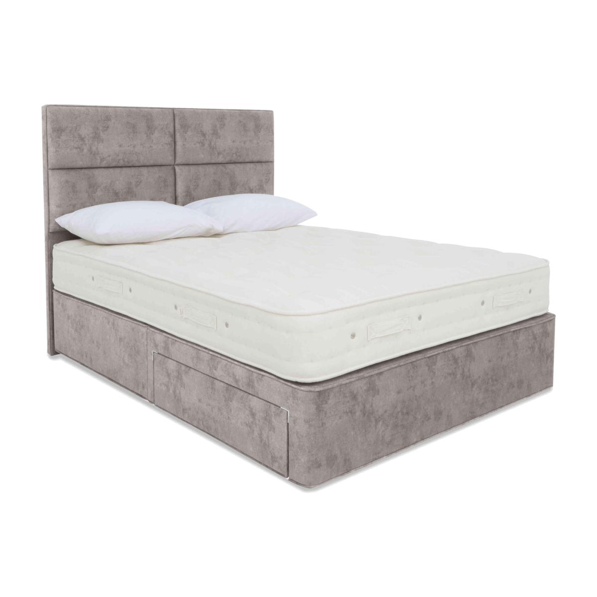 Luxury comfort and firm support come together beautifully in the Hypnos Luxury Firm collection. Alongside superior craftsmanship and exceptional quality, this collection gives firm-mattress seekers something else – outstanding choice. The collection comprises four ranges – Hypnos Luxury Firm 1, Hypnos Luxury Firm 2, Hypnos Luxury Firm 3 and Hypnos Luxury Firm 4 – each of which offers a different combination of firm or extra-firm support and sumptuous comfort with layers of ReActive™ 6-turn pocket springs, cooling British-certified wool, and all-natural fillings. Shop the complete Luxury Firm collection for mattresses and divan sets with ottoman storage, hideaway storage and optional drawers. Handcrafted in the UK exclusively for Furniture Village. If you sleep better on an extra-firm mattress, you’ll get that and so much more when you choose this stylish divan set by Hypnos. Only at Furniture Village. Why you'll love it True support, luxury feel – that’s this lovely Hypnos divan set with mattress. A unique combination of luxurious comfort and extra-firm support. 1,200 ReActive™ 6-turn pocket springs in king size respond to your shape and weight. Layers of temperature-regulating wool, cotton, hemp and comfort fibres. Chemical-free linen and cotton sleep surface. Traditionally crafted with tufting and 2 rows of side stitching. Set on a supportive platform top base with optional storage drawers. Wide choice of upholstery fabrics. Handmade in the UK by Hypnos exclusively for Furniture Village. This divan set is part of the Hypnos Luxury Firm 2 range. What you need to know Mattress type: Pocket spring. Depth: 27 cm. Firmness: Extra firm. Springs: 1,200 ReActive™ 6-turn pocket springs in king size. Pillow top: No. Fillings: British certified wool; responsibly sourced cotton and hemp; e. Olus™ recycled comfort fibres. Cover: Cotton, flax. Requires turning: No. Base type: Platform top with optional storage drawers. Not all drawer options are available in all sizes. Sizes: Single, small double, double, king, super king. Mattress care:Air for 4 hours before using to remove any odour. Allow at least 4 hours for springs to settle and for mattress to attain its full size. Indentations caused by settlement of fillings or body weight are normal and are not considered defects. If used on a slatted bed frame, the space between slats must be no wider than 7.5 cm. Spaces wider than this may cause excess dipping of the mattress and invalidate the guarantee. Always use a mattress protector. Rotate regularly. Divan base care: Clean upholstery weekly using a soft brush or vacuum with the curtain attachment. Professional cleaning advised for oil- and grease-based stains. Some fabrics can show wear on areas of more use or in direct sunlight.