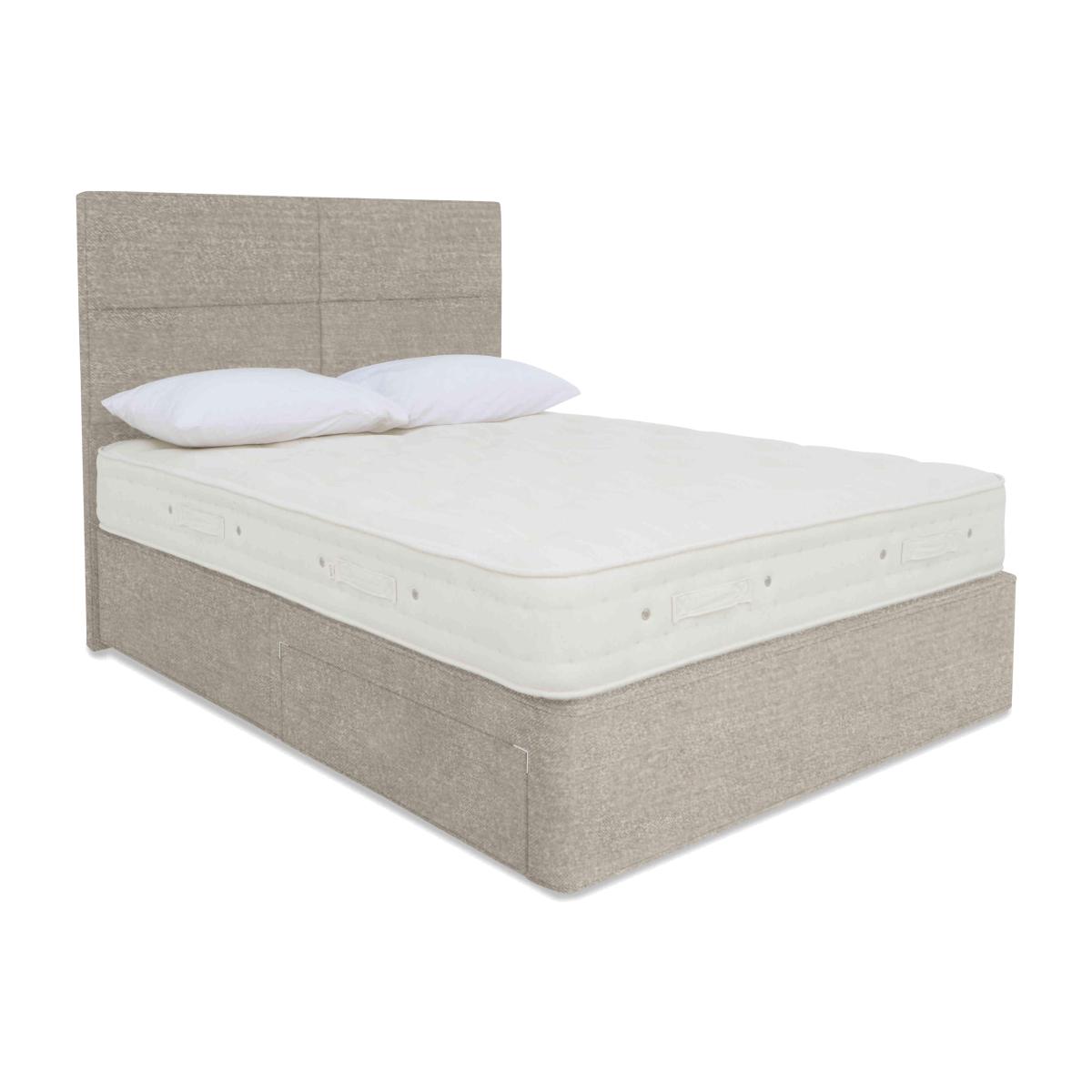 Luxury comfort and firm support come together beautifully in the Hypnos Luxury Firm collection. Alongside superior craftsmanship and exceptional quality, this collection gives firm-mattress seekers something else – outstanding choice. The collection comprises four ranges – Hypnos Luxury Firm 1, Hypnos Luxury Firm 2, Hypnos Luxury Firm 3 and Hypnos Luxury Firm 4 – each of which offers a different combination of firm or extra-firm support and sumptuous comfort with layers of ReActive™ 6-turn pocket springs, cooling British-certified wool, and all-natural fillings. Shop the complete Luxury Firm collection for mattresses and divan sets with ottoman storage, hideaway storage and optional drawers. Handcrafted in the UK exclusively for Furniture Village. If you sleep better on an extra-firm mattress, you’ll get that and so much more when you choose this stylish divan set by Hypnos. Only at Furniture Village. Why you'll love it True support, luxury feel – that’s this lovely Hypnos divan set with mattress. A unique combination of luxurious comfort and extra-firm support. 1,200 ReActive™ 6-turn pocket springs in king size respond to your shape and weight. Layers of temperature-regulating wool, cotton, hemp and comfort fibres. Chemical-free linen and cotton sleep surface. Traditionally crafted with tufting and 2 rows of side stitching. Set on a supportive platform top base with optional storage drawers. Wide choice of upholstery fabrics. Handmade in the UK by Hypnos exclusively for Furniture Village. This divan set is part of the Hypnos Luxury Firm 2 range. What you need to know Mattress type: Pocket spring. Depth: 27 cm. Firmness: Extra firm. Springs: 1,200 ReActive™ 6-turn pocket springs in king size. Pillow top: No. Fillings: British certified wool; responsibly sourced cotton and hemp; e. Olus™ recycled comfort fibres. Cover: Cotton, flax. Requires turning: No. Base type: Platform top with optional storage drawers. Not all drawer options are available in all sizes. Sizes: Single, small double, double, king, super king. Mattress care:Air for 4 hours before using to remove any odour. Allow at least 4 hours for springs to settle and for mattress to attain its full size. Indentations caused by settlement of fillings or body weight are normal and are not considered defects. If used on a slatted bed frame, the space between slats must be no wider than 7.5 cm. Spaces wider than this may cause excess dipping of the mattress and invalidate the guarantee. Always use a mattress protector. Rotate regularly. Divan base care: Clean upholstery weekly using a soft brush or vacuum with the curtain attachment. Professional cleaning advised for oil- and grease-based stains. Some fabrics can show wear on areas of more use or in direct sunlight.
