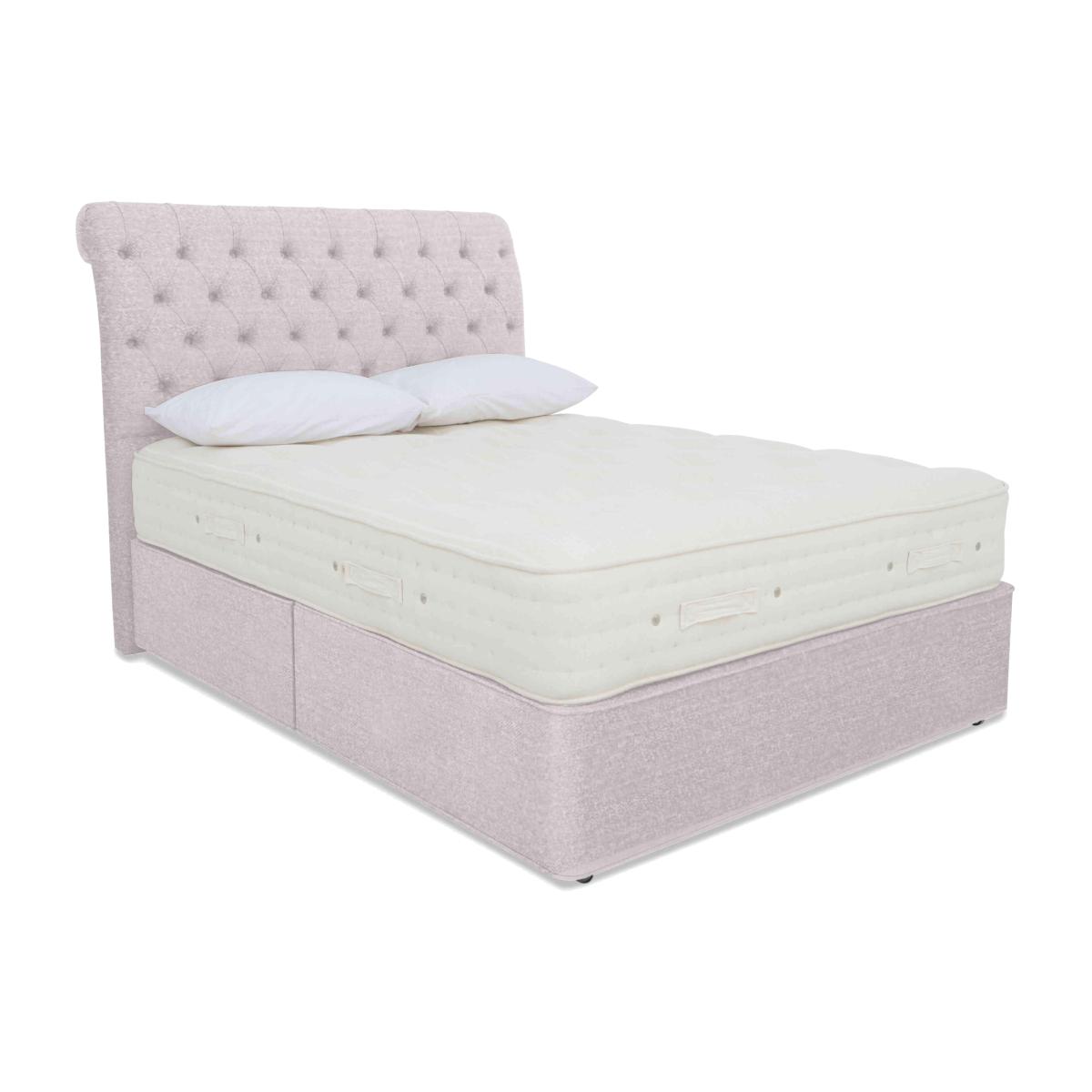 Luxury comfort and firm support come together beautifully in the Hypnos Luxury Firm collection. Alongside superior craftsmanship and exceptional quality, this collection gives firm-mattress seekers something else – outstanding choice. The collection comprises four ranges – Hypnos Luxury Firm 1, Hypnos Luxury Firm 2, Hypnos Luxury Firm 3 and Hypnos Luxury Firm 4 – each of which offers a different combination of firm or extra-firm support and sumptuous comfort with layers of ReActive™ 6-turn pocket springs, cooling British-certified wool, and all-natural fillings. Shop the complete Luxury Firm collection for mattresses and divan sets with ottoman storage, hideaway storage and optional drawers. Handcrafted in the UK exclusively for Furniture Village. With temperature-regulating fillings and firmer-feel pocket spring support, the mattress in this Hypnos divan set is designed for better sleep. Only at Furniture Village. Why you'll love it The mattress in this divan set offers cooling fillings and real pocket spring support. A unique combination of luxurious comfort and firmer-feel support. 1,400 ReActive™ 6-turn pocket springs in king size respond to your shape and weight. Layers of temperature-regulating wool and flax, plus cotton and comfort fibres. Chemical-free linen and cotton sleep surface. Traditionally crafted with tufting and 3 rows of side stitching. Set on a supportive platform top base with optional storage drawers. Wide choice of upholstery fabrics. Handmade in the UK by Hypnos exclusively for Furniture Village. This divan set is part of the Hypnos Luxury Firm 3 range. What you need to know Mattress type: Pocket spring. Depth: 29 cm. Firmness: Firm. Springs: 1,400 ReActive™ 6-turn pocket springs in king size. Pillow top: No. Fillings: British certified wool; responsibly sourced cotton and flax; e. Olus™ recycled comfort fibres. Cover: Cotton, flax. Requires turning: No. Base type: Platform top with optional storage drawers. Not all drawer options are available in all sizes. Sizes: Single, small double, double, king, super king. Mattress care:Air for 4 hours before using to remove any odour. Allow at least 4 hours for springs to settle and for mattress to attain its full size. Indentations caused by settlement of fillings or body weight are normal and are not considered defects. If used on a slatted bed frame, the space between slats must be no wider than 7.5 cm. Spaces wider than this may cause excess dipping of the mattress and invalidate the guarantee. Always use a mattress protector. Rotate regularly. Divan base care: Clean upholstery weekly using a soft brush or vacuum with the curtain attachment. Professional cleaning advised for oil- and grease-based stains. Some fabrics can show wear on areas of more use or in direct sunlight.