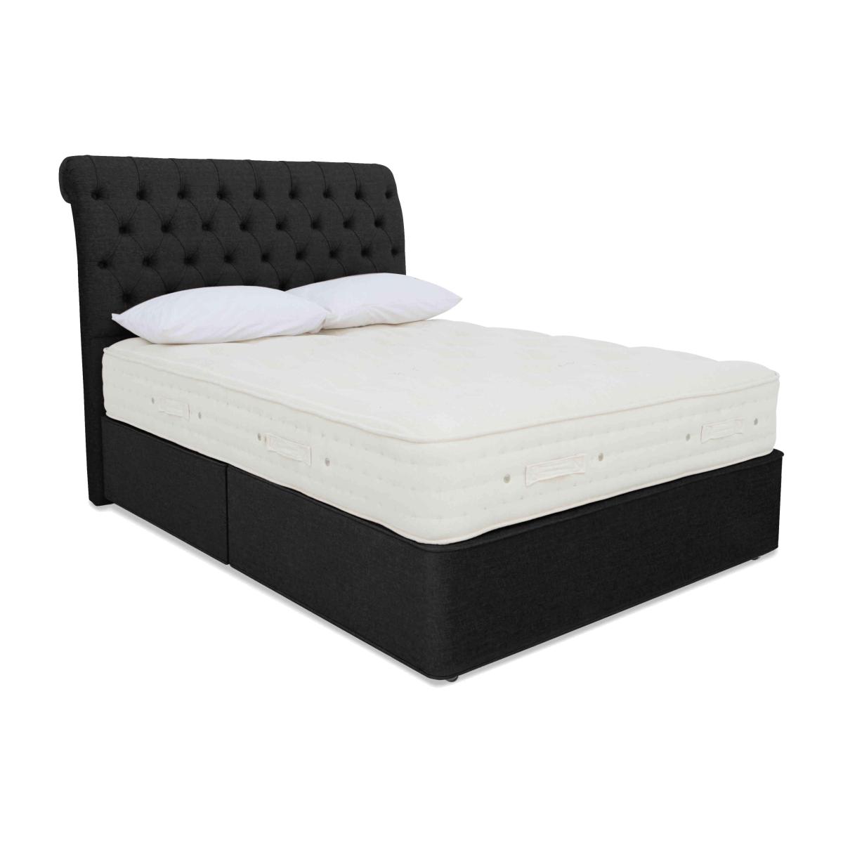 Luxury comfort and firm support come together beautifully in the Hypnos Luxury Firm collection. Alongside superior craftsmanship and exceptional quality, this collection gives firm-mattress seekers something else – outstanding choice. The collection comprises four ranges – Hypnos Luxury Firm 1, Hypnos Luxury Firm 2, Hypnos Luxury Firm 3 and Hypnos Luxury Firm 4 – each of which offers a different combination of firm or extra-firm support and sumptuous comfort with layers of ReActive™ 6-turn pocket springs, cooling British-certified wool, and all-natural fillings. Shop the complete Luxury Firm collection for mattresses and divan sets with ottoman storage, hideaway storage and optional drawers. Handcrafted in the UK exclusively for Furniture Village. With temperature-regulating fillings and firmer-feel pocket spring support, the mattress in this Hypnos divan set is designed for better sleep. Only at Furniture Village. Why you'll love it The mattress in this divan set offers cooling fillings and real pocket spring support. A unique combination of luxurious comfort and firmer-feel support. 1,400 ReActive™ 6-turn pocket springs in king size respond to your shape and weight. Layers of temperature-regulating wool and flax, plus cotton and comfort fibres. Chemical-free linen and cotton sleep surface. Traditionally crafted with tufting and 3 rows of side stitching. Set on a supportive platform top base with optional storage drawers. Wide choice of upholstery fabrics. Handmade in the UK by Hypnos exclusively for Furniture Village. This divan set is part of the Hypnos Luxury Firm 3 range. What you need to know Mattress type: Pocket spring. Depth: 29 cm. Firmness: Firm. Springs: 1,400 ReActive™ 6-turn pocket springs in king size. Pillow top: No. Fillings: British certified wool; responsibly sourced cotton and flax; e. Olus™ recycled comfort fibres. Cover: Cotton, flax. Requires turning: No. Base type: Platform top with optional storage drawers. Not all drawer options are available in all sizes. Sizes: Single, small double, double, king, super king. Mattress care:Air for 4 hours before using to remove any odour. Allow at least 4 hours for springs to settle and for mattress to attain its full size. Indentations caused by settlement of fillings or body weight are normal and are not considered defects. If used on a slatted bed frame, the space between slats must be no wider than 7.5 cm. Spaces wider than this may cause excess dipping of the mattress and invalidate the guarantee. Always use a mattress protector. Rotate regularly. Divan base care: Clean upholstery weekly using a soft brush or vacuum with the curtain attachment. Professional cleaning advised for oil- and grease-based stains. Some fabrics can show wear on areas of more use or in direct sunlight.
