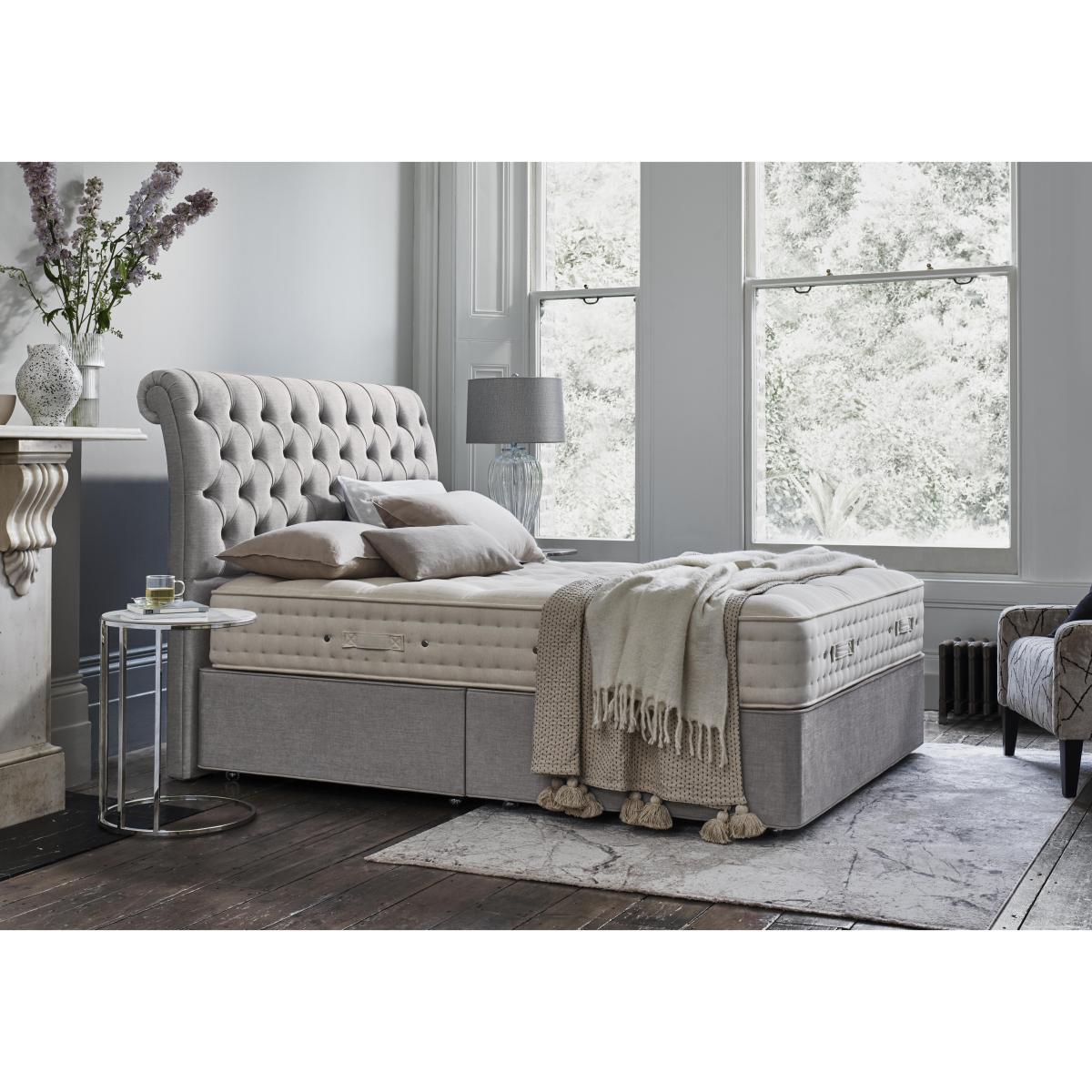Luxury comfort and firm support come together beautifully in the Hypnos Luxury Firm collection. Alongside superior craftsmanship and exceptional quality, this collection gives firm-mattress seekers something else – outstanding choice. The collection comprises four ranges – Hypnos Luxury Firm 1, Hypnos Luxury Firm 2, Hypnos Luxury Firm 3 and Hypnos Luxury Firm 4 – each of which offers a different combination of firm or extra-firm support and sumptuous comfort with layers of ReActive™ 6-turn pocket springs, cooling British-certified wool, and all-natural fillings. Shop the complete Luxury Firm collection for mattresses and divan sets with ottoman storage, hideaway storage and optional drawers. Handcrafted in the UK exclusively for Furniture Village. With temperature-regulating fillings and firmer-feel pocket spring support, the mattress in this Hypnos divan set is designed for better sleep. Only at Furniture Village. Why you'll love it The mattress in this divan set offers cooling fillings and real pocket spring support. A unique combination of luxurious comfort and firmer-feel support. 1,400 ReActive™ 6-turn pocket springs in king size respond to your shape and weight. Layers of temperature-regulating wool and flax, plus cotton and comfort fibres. Chemical-free linen and cotton sleep surface. Traditionally crafted with tufting and 3 rows of side stitching. Set on a supportive platform top base with optional storage drawers. Wide choice of upholstery fabrics. Handmade in the UK by Hypnos exclusively for Furniture Village. This divan set is part of the Hypnos Luxury Firm 3 range. What you need to know Mattress type: Pocket spring. Depth: 29 cm. Firmness: Firm. Springs: 1,400 ReActive™ 6-turn pocket springs in king size. Pillow top: No. Fillings: British certified wool; responsibly sourced cotton and flax; e. Olus™ recycled comfort fibres. Cover: Cotton, flax. Requires turning: No. Base type: Platform top with optional storage drawers. Not all drawer options are available in all sizes. Sizes: Single, small double, double, king, super king. Mattress care:Air for 4 hours before using to remove any odour. Allow at least 4 hours for springs to settle and for mattress to attain its full size. Indentations caused by settlement of fillings or body weight are normal and are not considered defects. If used on a slatted bed frame, the space between slats must be no wider than 7.5 cm. Spaces wider than this may cause excess dipping of the mattress and invalidate the guarantee. Always use a mattress protector. Rotate regularly. Divan base care: Clean upholstery weekly using a soft brush or vacuum with the curtain attachment. Professional cleaning advised for oil- and grease-based stains. Some fabrics can show wear on areas of more use or in direct sunlight.