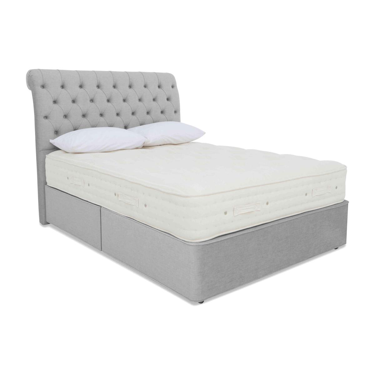 Luxury comfort and firm support come together beautifully in the Hypnos Luxury Firm collection. Alongside superior craftsmanship and exceptional quality, this collection gives firm-mattress seekers something else – outstanding choice. The collection comprises four ranges – Hypnos Luxury Firm 1, Hypnos Luxury Firm 2, Hypnos Luxury Firm 3 and Hypnos Luxury Firm 4 – each of which offers a different combination of firm or extra-firm support and sumptuous comfort with layers of ReActive™ 6-turn pocket springs, cooling British-certified wool, and all-natural fillings. Shop the complete Luxury Firm collection for mattresses and divan sets with ottoman storage, hideaway storage and optional drawers. Handcrafted in the UK exclusively for Furniture Village. With temperature-regulating fillings and firmer-feel pocket spring support, the mattress in this Hypnos divan set is designed for better sleep. Only at Furniture Village. Why you'll love it The mattress in this divan set offers cooling fillings and real pocket spring support. A unique combination of luxurious comfort and firmer-feel support. 1,400 ReActive™ 6-turn pocket springs in king size respond to your shape and weight. Layers of temperature-regulating wool and flax, plus cotton and comfort fibres. Chemical-free linen and cotton sleep surface. Traditionally crafted with tufting and 3 rows of side stitching. Set on a supportive platform top base with optional storage drawers. Wide choice of upholstery fabrics. Handmade in the UK by Hypnos exclusively for Furniture Village. This divan set is part of the Hypnos Luxury Firm 3 range. What you need to know Mattress type: Pocket spring. Depth: 29 cm. Firmness: Firm. Springs: 1,400 ReActive™ 6-turn pocket springs in king size. Pillow top: No. Fillings: British certified wool; responsibly sourced cotton and flax; e. Olus™ recycled comfort fibres. Cover: Cotton, flax. Requires turning: No. Base type: Platform top with optional storage drawers. Not all drawer options are available in all sizes. Sizes: Single, small double, double, king, super king. Mattress care:Air for 4 hours before using to remove any odour. Allow at least 4 hours for springs to settle and for mattress to attain its full size. Indentations caused by settlement of fillings or body weight are normal and are not considered defects. If used on a slatted bed frame, the space between slats must be no wider than 7.5 cm. Spaces wider than this may cause excess dipping of the mattress and invalidate the guarantee. Always use a mattress protector. Rotate regularly. Divan base care: Clean upholstery weekly using a soft brush or vacuum with the curtain attachment. Professional cleaning advised for oil- and grease-based stains. Some fabrics can show wear on areas of more use or in direct sunlight.