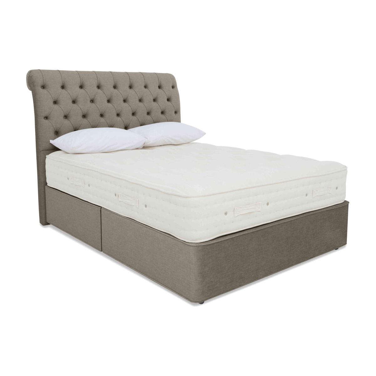 Luxury comfort and firm support come together beautifully in the Hypnos Luxury Firm collection. Alongside superior craftsmanship and exceptional quality, this collection gives firm-mattress seekers something else – outstanding choice. The collection comprises four ranges – Hypnos Luxury Firm 1, Hypnos Luxury Firm 2, Hypnos Luxury Firm 3 and Hypnos Luxury Firm 4 – each of which offers a different combination of firm or extra-firm support and sumptuous comfort with layers of ReActive™ 6-turn pocket springs, cooling British-certified wool, and all-natural fillings. Shop the complete Luxury Firm collection for mattresses and divan sets with ottoman storage, hideaway storage and optional drawers. Handcrafted in the UK exclusively for Furniture Village. With temperature-regulating fillings and firmer-feel pocket spring support, the mattress in this Hypnos divan set is designed for better sleep. Only at Furniture Village. Why you'll love it The mattress in this divan set offers cooling fillings and real pocket spring support. A unique combination of luxurious comfort and firmer-feel support. 1,400 ReActive™ 6-turn pocket springs in king size respond to your shape and weight. Layers of temperature-regulating wool and flax, plus cotton and comfort fibres. Chemical-free linen and cotton sleep surface. Traditionally crafted with tufting and 3 rows of side stitching. Set on a supportive platform top base with optional storage drawers. Wide choice of upholstery fabrics. Handmade in the UK by Hypnos exclusively for Furniture Village. This divan set is part of the Hypnos Luxury Firm 3 range. What you need to know Mattress type: Pocket spring. Depth: 29 cm. Firmness: Firm. Springs: 1,400 ReActive™ 6-turn pocket springs in king size. Pillow top: No. Fillings: British certified wool; responsibly sourced cotton and flax; e. Olus™ recycled comfort fibres. Cover: Cotton, flax. Requires turning: No. Base type: Platform top with optional storage drawers. Not all drawer options are available in all sizes. Sizes: Single, small double, double, king, super king. Mattress care:Air for 4 hours before using to remove any odour. Allow at least 4 hours for springs to settle and for mattress to attain its full size. Indentations caused by settlement of fillings or body weight are normal and are not considered defects. If used on a slatted bed frame, the space between slats must be no wider than 7.5 cm. Spaces wider than this may cause excess dipping of the mattress and invalidate the guarantee. Always use a mattress protector. Rotate regularly. Divan base care: Clean upholstery weekly using a soft brush or vacuum with the curtain attachment. Professional cleaning advised for oil- and grease-based stains. Some fabrics can show wear on areas of more use or in direct sunlight.
