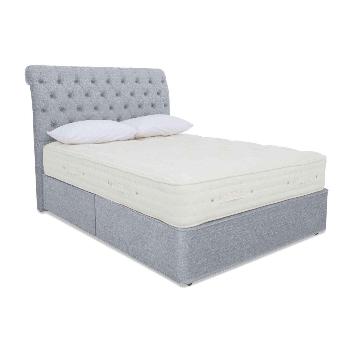 Luxury comfort and firm support come together beautifully in the Hypnos Luxury Firm collection. Alongside superior craftsmanship and exceptional quality, this collection gives firm-mattress seekers something else – outstanding choice. The collection comprises four ranges – Hypnos Luxury Firm 1, Hypnos Luxury Firm 2, Hypnos Luxury Firm 3 and Hypnos Luxury Firm 4 – each of which offers a different combination of firm or extra-firm support and sumptuous comfort with layers of ReActive™ 6-turn pocket springs, cooling British-certified wool, and all-natural fillings. Shop the complete Luxury Firm collection for mattresses and divan sets with ottoman storage, hideaway storage and optional drawers. Handcrafted in the UK exclusively for Furniture Village. With temperature-regulating fillings and firmer-feel pocket spring support, the mattress in this Hypnos divan set is designed for better sleep. Only at Furniture Village. Why you'll love it The mattress in this divan set offers cooling fillings and real pocket spring support. A unique combination of luxurious comfort and firmer-feel support. 1,400 ReActive™ 6-turn pocket springs in king size respond to your shape and weight. Layers of temperature-regulating wool and flax, plus cotton and comfort fibres. Chemical-free linen and cotton sleep surface. Traditionally crafted with tufting and 3 rows of side stitching. Set on a supportive platform top base with optional storage drawers. Wide choice of upholstery fabrics. Handmade in the UK by Hypnos exclusively for Furniture Village. This divan set is part of the Hypnos Luxury Firm 3 range. What you need to know Mattress type: Pocket spring. Depth: 29 cm. Firmness: Firm. Springs: 1,400 ReActive™ 6-turn pocket springs in king size. Pillow top: No. Fillings: British certified wool; responsibly sourced cotton and flax; e. Olus™ recycled comfort fibres. Cover: Cotton, flax. Requires turning: No. Base type: Platform top with optional storage drawers. Not all drawer options are available in all sizes. Sizes: Single, small double, double, king, super king. Mattress care:Air for 4 hours before using to remove any odour. Allow at least 4 hours for springs to settle and for mattress to attain its full size. Indentations caused by settlement of fillings or body weight are normal and are not considered defects. If used on a slatted bed frame, the space between slats must be no wider than 7.5 cm. Spaces wider than this may cause excess dipping of the mattress and invalidate the guarantee. Always use a mattress protector. Rotate regularly. Divan base care: Clean upholstery weekly using a soft brush or vacuum with the curtain attachment. Professional cleaning advised for oil- and grease-based stains. Some fabrics can show wear on areas of more use or in direct sunlight.
