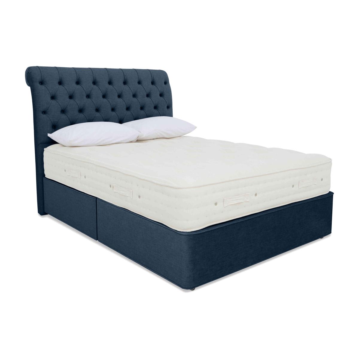 Luxury comfort and firm support come together beautifully in the Hypnos Luxury Firm collection. Alongside superior craftsmanship and exceptional quality, this collection gives firm-mattress seekers something else – outstanding choice. The collection comprises four ranges – Hypnos Luxury Firm 1, Hypnos Luxury Firm 2, Hypnos Luxury Firm 3 and Hypnos Luxury Firm 4 – each of which offers a different combination of firm or extra-firm support and sumptuous comfort with layers of ReActive™ 6-turn pocket springs, cooling British-certified wool, and all-natural fillings. Shop the complete Luxury Firm collection for mattresses and divan sets with ottoman storage, hideaway storage and optional drawers. Handcrafted in the UK exclusively for Furniture Village. With temperature-regulating fillings and firmer-feel pocket spring support, the mattress in this Hypnos divan set is designed for better sleep. Only at Furniture Village. Why you'll love it The mattress in this divan set offers cooling fillings and real pocket spring support. A unique combination of luxurious comfort and firmer-feel support. 1,400 ReActive™ 6-turn pocket springs in king size respond to your shape and weight. Layers of temperature-regulating wool and flax, plus cotton and comfort fibres. Chemical-free linen and cotton sleep surface. Traditionally crafted with tufting and 3 rows of side stitching. Set on a supportive platform top base with optional storage drawers. Wide choice of upholstery fabrics. Handmade in the UK by Hypnos exclusively for Furniture Village. This divan set is part of the Hypnos Luxury Firm 3 range. What you need to know Mattress type: Pocket spring. Depth: 29 cm. Firmness: Firm. Springs: 1,400 ReActive™ 6-turn pocket springs in king size. Pillow top: No. Fillings: British certified wool; responsibly sourced cotton and flax; e. Olus™ recycled comfort fibres. Cover: Cotton, flax. Requires turning: No. Base type: Platform top with optional storage drawers. Not all drawer options are available in all sizes. Sizes: Single, small double, double, king, super king. Mattress care:Air for 4 hours before using to remove any odour. Allow at least 4 hours for springs to settle and for mattress to attain its full size. Indentations caused by settlement of fillings or body weight are normal and are not considered defects. If used on a slatted bed frame, the space between slats must be no wider than 7.5 cm. Spaces wider than this may cause excess dipping of the mattress and invalidate the guarantee. Always use a mattress protector. Rotate regularly. Divan base care: Clean upholstery weekly using a soft brush or vacuum with the curtain attachment. Professional cleaning advised for oil- and grease-based stains. Some fabrics can show wear on areas of more use or in direct sunlight.