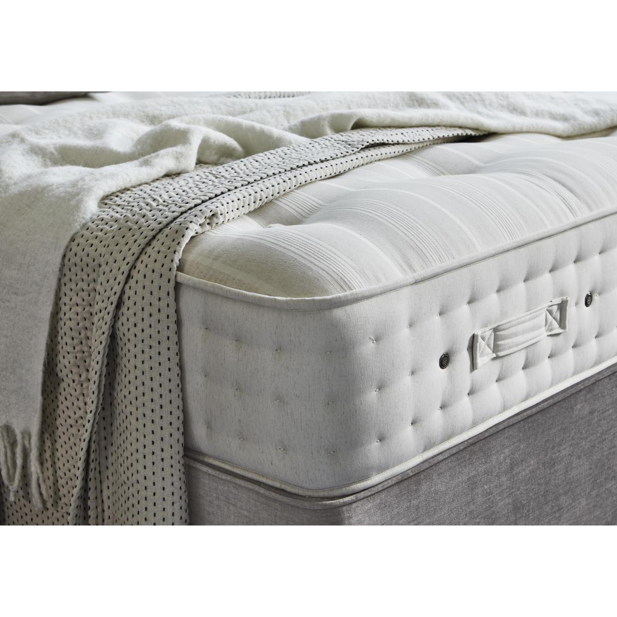 Luxury comfort and firm support come together beautifully in the Hypnos Luxury Firm collection. Alongside superior craftsmanship and exceptional quality, this collection gives firm-mattress seekers something else – outstanding choice. The collection comprises four ranges – Hypnos Luxury Firm 1, Hypnos Luxury Firm 2, Hypnos Luxury Firm 3 and Hypnos Luxury Firm 4 – each of which offers a different combination of firm or extra-firm support and sumptuous comfort with layers of ReActive™ 6-turn pocket springs, cooling British-certified wool, and all-natural fillings. Shop the complete Luxury Firm collection for mattresses and divan sets with ottoman storage, hideaway storage and optional drawers. Handcrafted in the UK exclusively for Furniture Village. With temperature-regulating fillings and firmer-feel pocket spring support, the mattress in this Hypnos divan set is designed for better sleep. Only at Furniture Village. Why you'll love it The mattress in this divan set offers cooling fillings and real pocket spring support. A unique combination of luxurious comfort and firmer-feel support. 1,400 ReActive™ 6-turn pocket springs in king size respond to your shape and weight. Layers of temperature-regulating wool and flax, plus cotton and comfort fibres. Chemical-free linen and cotton sleep surface. Traditionally crafted with tufting and 3 rows of side stitching. Set on a supportive platform top base with optional storage drawers. Wide choice of upholstery fabrics. Handmade in the UK by Hypnos exclusively for Furniture Village. This divan set is part of the Hypnos Luxury Firm 3 range. What you need to know Mattress type: Pocket spring. Depth: 29 cm. Firmness: Firm. Springs: 1,400 ReActive™ 6-turn pocket springs in king size. Pillow top: No. Fillings: British certified wool; responsibly sourced cotton and flax; e. Olus™ recycled comfort fibres. Cover: Cotton, flax. Requires turning: No. Base type: Platform top with optional storage drawers. Not all drawer options are available in all sizes. Sizes: Single, small double, double, king, super king. Mattress care:Air for 4 hours before using to remove any odour. Allow at least 4 hours for springs to settle and for mattress to attain its full size. Indentations caused by settlement of fillings or body weight are normal and are not considered defects. If used on a slatted bed frame, the space between slats must be no wider than 7.5 cm. Spaces wider than this may cause excess dipping of the mattress and invalidate the guarantee. Always use a mattress protector. Rotate regularly. Divan base care: Clean upholstery weekly using a soft brush or vacuum with the curtain attachment. Professional cleaning advised for oil- and grease-based stains. Some fabrics can show wear on areas of more use or in direct sunlight.