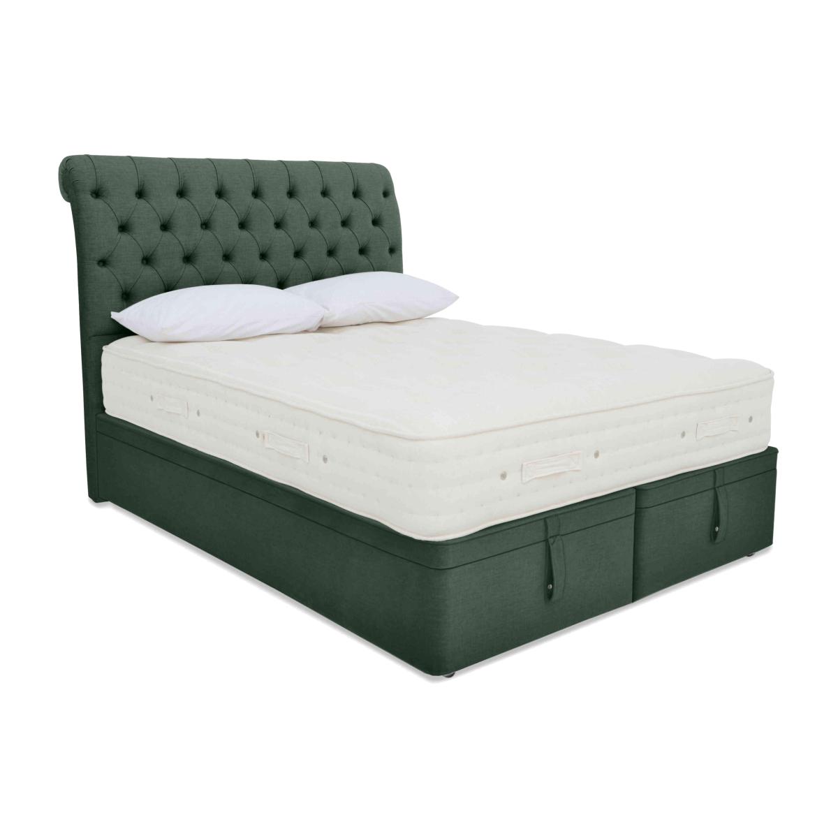 Luxury comfort and firm support come together beautifully in the Hypnos Luxury Firm collection. Alongside superior craftsmanship and exceptional quality, this collection gives firm-mattress seekers something else – outstanding choice. The collection comprises four ranges – Hypnos Luxury Firm 1, Hypnos Luxury Firm 2, Hypnos Luxury Firm 3 and Hypnos Luxury Firm 4 – each of which offers a different combination of firm or extra-firm support and sumptuous comfort with layers of ReActive™ 6-turn pocket springs, cooling British-certified wool, and all-natural fillings. Shop the complete Luxury Firm collection for mattresses and divan sets with ottoman storage, hideaway storage and optional drawers. Handcrafted in the UK exclusively for Furniture Village. Made to maximise your bedroom storage space, this Hypnos ottoman divan set includes a wonderful firmer-feel pocket spring mattress with high-quality cooling fillings. Why you'll love it Storage-rich ottoman divan set comes with ultra-supportive pocket spring mattress. A unique combination of luxurious comfort and firmer-feel support. 1,400 ReActive™ 6-turn pocket springs in king size respond to your shape and weight. Layers of temperature-regulating wool and flax, plus cotton and comfort fibres. Chemical-free linen and cotton sleep surface. Traditionally crafted with tufting and 3 rows of side stitching. Set on a supportive platform top base with spacious ottoman storage. Wide choice of upholstery fabrics. Handmade in the UK by Hypnos exclusively for Furniture Village. This ottoman divan set is part of the Hypnos Luxury Firm 3 range. What you need to know Mattress type: Pocket spring. Depth: 29 cm. Firmness: Firm. Springs: 1,400 ReActive™ 6-turn pocket springs in king size. Pillow top: No. Fillings: British certified wool; responsibly sourced cotton and flax; e. Olus™ recycled comfort fibres. Cover: Cotton, flax. Requires turning: No. Base type: Platform top with ottoman storage. Sizes: Single, double, king, super king. Mattress care:Air for 4 hours before using to remove any odour. Allow at least 4 hours for springs to settle and for mattress to attain its full size. Indentations caused by settlement of fillings or body weight are normal and are not considered defects. If used on a slatted bed frame, the space between slats must be no wider than 7.5 cm. Spaces wider than this may cause excess dipping of the mattress and invalidate the guarantee. Always use a mattress protector. Rotate regularly. Divan base care: Clean upholstery weekly using a soft brush or vacuum with the curtain attachment. Professional cleaning advised for oil- and grease-based stains. Some fabrics can show wear on areas of more use or in direct sunlight.