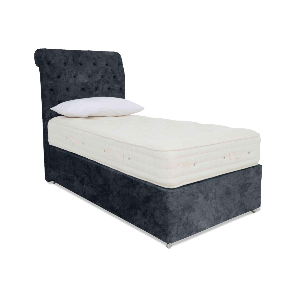 Luxury comfort and firm support come together beautifully in the Hypnos Luxury Firm collection. Alongside superior craftsmanship and exceptional quality, this collection gives firm-mattress seekers something else – outstanding choice. The collection comprises four ranges – Hypnos Luxury Firm 1, Hypnos Luxury Firm 2, Hypnos Luxury Firm 3 and Hypnos Luxury Firm 4 – each of which offers a different combination of firm or extra-firm support and sumptuous comfort with layers of ReActive™ 6-turn pocket springs, cooling British-certified wool, and all-natural fillings. Shop the complete Luxury Firm collection for mattresses and divan sets with ottoman storage, hideaway storage and optional drawers. Handcrafted in the UK exclusively for Furniture Village. Offering a harmonious balance of extra firm mattress support and luxurious thermo-regulating natural fillings, the mattress in this stylish divan set promises better sleep. From Hypnos. Why you'll love it Sleep in luxury with this very firm mattress and divan set by Hypnos. A unique combination of truly luxurious comfort and extra firm support. 1,600 ReActive™ 6-turn pocket springs in king size respond to your shape and weight. Layers of temperature-regulating wool, cotton, flax, hemp and comfort fibres. Chemical-free linen and cotton sleep surface. Traditionally crafted with tufting and 3 rows of side stitching. Set on a supportive platform top base with optional storage drawers. Wide choice of upholstery fabrics. Handmade in the UK by Hypnos exclusively for Furniture Village. This divan set is part of the Hypnos Luxury Firm 4 range. What you need to know Mattress type: Pocket spring. Depth: 30 cm. Firmness: Extra firm. Springs: 1,600 ReActive™ 6-turn pocket springs in king size. Pillow top: No. Fillings: British certified wool; responsibly sourced cotton, flax and hemp; e. Olus™ recycled comfort fibres. Cover: Cotton, flax. Requires turning: No. Base type: Platform top with optional storage drawers. Not all drawer options are available in all sizes. Sizes: Single, small double, double, king, super king. Mattress care:Air for 4 hours before using to remove any odour. Allow at least 4 hours for springs to settle and for mattress to attain its full size. Indentations caused by settlement of fillings or body weight are normal and are not considered defects. If used on a slatted bed frame, the space between slats must be no wider than 7.5 cm. Spaces wider than this may cause excess dipping of the mattress and invalidate the guarantee. Always use a mattress protector. Rotate regularly. Divan base care: Clean upholstery weekly using a soft brush or vacuum with the curtain attachment. Professional cleaning advised for oil- and grease-based stains. Some fabrics can show wear on areas of more use or in direct sunlight.