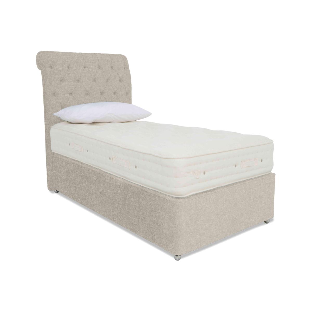Luxury comfort and firm support come together beautifully in the Hypnos Luxury Firm collection. Alongside superior craftsmanship and exceptional quality, this collection gives firm-mattress seekers something else – outstanding choice. The collection comprises four ranges – Hypnos Luxury Firm 1, Hypnos Luxury Firm 2, Hypnos Luxury Firm 3 and Hypnos Luxury Firm 4 – each of which offers a different combination of firm or extra-firm support and sumptuous comfort with layers of ReActive™ 6-turn pocket springs, cooling British-certified wool, and all-natural fillings. Shop the complete Luxury Firm collection for mattresses and divan sets with ottoman storage, hideaway storage and optional drawers. Handcrafted in the UK exclusively for Furniture Village. Offering a harmonious balance of extra firm mattress support and luxurious thermo-regulating natural fillings, the mattress in this stylish divan set promises better sleep. From Hypnos. Why you'll love it Sleep in luxury with this very firm mattress and divan set by Hypnos. A unique combination of truly luxurious comfort and extra firm support. 1,600 ReActive™ 6-turn pocket springs in king size respond to your shape and weight. Layers of temperature-regulating wool, cotton, flax, hemp and comfort fibres. Chemical-free linen and cotton sleep surface. Traditionally crafted with tufting and 3 rows of side stitching. Set on a supportive platform top base with optional storage drawers. Wide choice of upholstery fabrics. Handmade in the UK by Hypnos exclusively for Furniture Village. This divan set is part of the Hypnos Luxury Firm 4 range. What you need to know Mattress type: Pocket spring. Depth: 30 cm. Firmness: Extra firm. Springs: 1,600 ReActive™ 6-turn pocket springs in king size. Pillow top: No. Fillings: British certified wool; responsibly sourced cotton, flax and hemp; e. Olus™ recycled comfort fibres. Cover: Cotton, flax. Requires turning: No. Base type: Platform top with optional storage drawers. Not all drawer options are available in all sizes. Sizes: Single, small double, double, king, super king. Mattress care:Air for 4 hours before using to remove any odour. Allow at least 4 hours for springs to settle and for mattress to attain its full size. Indentations caused by settlement of fillings or body weight are normal and are not considered defects. If used on a slatted bed frame, the space between slats must be no wider than 7.5 cm. Spaces wider than this may cause excess dipping of the mattress and invalidate the guarantee. Always use a mattress protector. Rotate regularly. Divan base care: Clean upholstery weekly using a soft brush or vacuum with the curtain attachment. Professional cleaning advised for oil- and grease-based stains. Some fabrics can show wear on areas of more use or in direct sunlight.