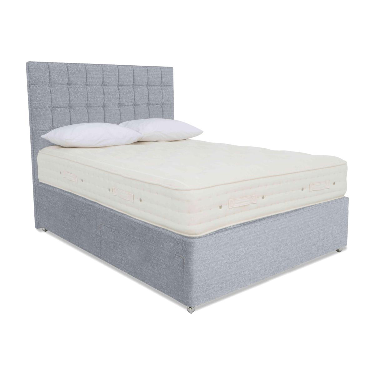 Luxury comfort and firm support come together beautifully in the Hypnos Luxury Firm collection. Alongside superior craftsmanship and exceptional quality, this collection gives firm-mattress seekers something else – outstanding choice. The collection comprises four ranges – Hypnos Luxury Firm 1, Hypnos Luxury Firm 2, Hypnos Luxury Firm 3 and Hypnos Luxury Firm 4 – each of which offers a different combination of firm or extra-firm support and sumptuous comfort with layers of ReActive™ 6-turn pocket springs, cooling British-certified wool, and all-natural fillings. Shop the complete Luxury Firm collection for mattresses and divan sets with ottoman storage, hideaway storage and optional drawers. Handcrafted in the UK exclusively for Furniture Village. Offering a harmonious balance of extra firm mattress support and luxurious thermo-regulating natural fillings, the mattress in this stylish divan set promises better sleep. From Hypnos. Why you'll love it Sleep in luxury with this very firm mattress and divan set by Hypnos. A unique combination of truly luxurious comfort and extra firm support. 1,600 ReActive™ 6-turn pocket springs in king size respond to your shape and weight. Layers of temperature-regulating wool, cotton, flax, hemp and comfort fibres. Chemical-free linen and cotton sleep surface. Traditionally crafted with tufting and 3 rows of side stitching. Set on a supportive platform top base with optional storage drawers. Wide choice of upholstery fabrics. Handmade in the UK by Hypnos exclusively for Furniture Village. This divan set is part of the Hypnos Luxury Firm 4 range. What you need to know Mattress type: Pocket spring. Depth: 30 cm. Firmness: Extra firm. Springs: 1,600 ReActive™ 6-turn pocket springs in king size. Pillow top: No. Fillings: British certified wool; responsibly sourced cotton, flax and hemp; e. Olus™ recycled comfort fibres. Cover: Cotton, flax. Requires turning: No. Base type: Platform top with optional storage drawers. Not all drawer options are available in all sizes. Sizes: Single, small double, double, king, super king. Mattress care:Air for 4 hours before using to remove any odour. Allow at least 4 hours for springs to settle and for mattress to attain its full size. Indentations caused by settlement of fillings or body weight are normal and are not considered defects. If used on a slatted bed frame, the space between slats must be no wider than 7.5 cm. Spaces wider than this may cause excess dipping of the mattress and invalidate the guarantee. Always use a mattress protector. Rotate regularly. Divan base care: Clean upholstery weekly using a soft brush or vacuum with the curtain attachment. Professional cleaning advised for oil- and grease-based stains. Some fabrics can show wear on areas of more use or in direct sunlight.