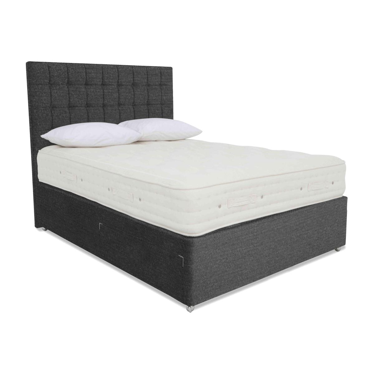 Luxury comfort and firm support come together beautifully in the Hypnos Luxury Firm collection. Alongside superior craftsmanship and exceptional quality, this collection gives firm-mattress seekers something else – outstanding choice. The collection comprises four ranges – Hypnos Luxury Firm 1, Hypnos Luxury Firm 2, Hypnos Luxury Firm 3 and Hypnos Luxury Firm 4 – each of which offers a different combination of firm or extra-firm support and sumptuous comfort with layers of ReActive™ 6-turn pocket springs, cooling British-certified wool, and all-natural fillings. Shop the complete Luxury Firm collection for mattresses and divan sets with ottoman storage, hideaway storage and optional drawers. Handcrafted in the UK exclusively for Furniture Village. Offering a harmonious balance of extra firm mattress support and luxurious thermo-regulating natural fillings, the mattress in this stylish divan set promises better sleep. From Hypnos. Why you'll love it Sleep in luxury with this very firm mattress and divan set by Hypnos. A unique combination of truly luxurious comfort and extra firm support. 1,600 ReActive™ 6-turn pocket springs in king size respond to your shape and weight. Layers of temperature-regulating wool, cotton, flax, hemp and comfort fibres. Chemical-free linen and cotton sleep surface. Traditionally crafted with tufting and 3 rows of side stitching. Set on a supportive platform top base with optional storage drawers. Wide choice of upholstery fabrics. Handmade in the UK by Hypnos exclusively for Furniture Village. This divan set is part of the Hypnos Luxury Firm 4 range. What you need to know Mattress type: Pocket spring. Depth: 30 cm. Firmness: Extra firm. Springs: 1,600 ReActive™ 6-turn pocket springs in king size. Pillow top: No. Fillings: British certified wool; responsibly sourced cotton, flax and hemp; e. Olus™ recycled comfort fibres. Cover: Cotton, flax. Requires turning: No. Base type: Platform top with optional storage drawers. Not all drawer options are available in all sizes. Sizes: Single, small double, double, king, super king. Mattress care:Air for 4 hours before using to remove any odour. Allow at least 4 hours for springs to settle and for mattress to attain its full size. Indentations caused by settlement of fillings or body weight are normal and are not considered defects. If used on a slatted bed frame, the space between slats must be no wider than 7.5 cm. Spaces wider than this may cause excess dipping of the mattress and invalidate the guarantee. Always use a mattress protector. Rotate regularly. Divan base care: Clean upholstery weekly using a soft brush or vacuum with the curtain attachment. Professional cleaning advised for oil- and grease-based stains. Some fabrics can show wear on areas of more use or in direct sunlight.