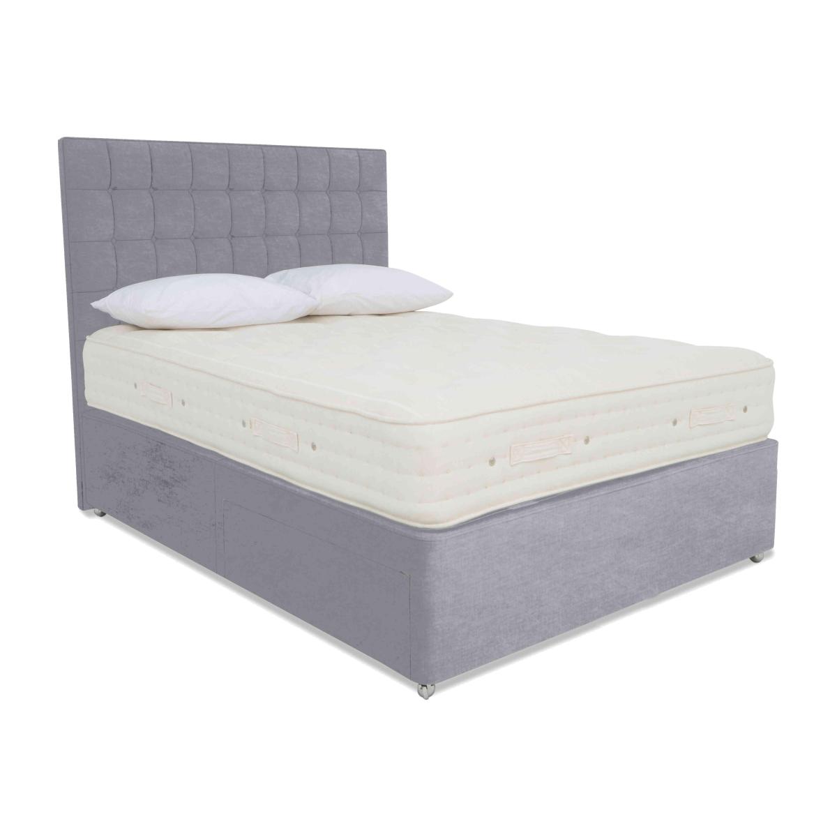 Luxury comfort and firm support come together beautifully in the Hypnos Luxury Firm collection. Alongside superior craftsmanship and exceptional quality, this collection gives firm-mattress seekers something else – outstanding choice. The collection comprises four ranges – Hypnos Luxury Firm 1, Hypnos Luxury Firm 2, Hypnos Luxury Firm 3 and Hypnos Luxury Firm 4 – each of which offers a different combination of firm or extra-firm support and sumptuous comfort with layers of ReActive™ 6-turn pocket springs, cooling British-certified wool, and all-natural fillings. Shop the complete Luxury Firm collection for mattresses and divan sets with ottoman storage, hideaway storage and optional drawers. Handcrafted in the UK exclusively for Furniture Village. Offering a harmonious balance of extra firm mattress support and luxurious thermo-regulating natural fillings, the mattress in this stylish divan set promises better sleep. From Hypnos. Why you'll love it Sleep in luxury with this very firm mattress and divan set by Hypnos. A unique combination of truly luxurious comfort and extra firm support. 1,600 ReActive™ 6-turn pocket springs in king size respond to your shape and weight. Layers of temperature-regulating wool, cotton, flax, hemp and comfort fibres. Chemical-free linen and cotton sleep surface. Traditionally crafted with tufting and 3 rows of side stitching. Set on a supportive platform top base with optional storage drawers. Wide choice of upholstery fabrics. Handmade in the UK by Hypnos exclusively for Furniture Village. This divan set is part of the Hypnos Luxury Firm 4 range. What you need to know Mattress type: Pocket spring. Depth: 30 cm. Firmness: Extra firm. Springs: 1,600 ReActive™ 6-turn pocket springs in king size. Pillow top: No. Fillings: British certified wool; responsibly sourced cotton, flax and hemp; e. Olus™ recycled comfort fibres. Cover: Cotton, flax. Requires turning: No. Base type: Platform top with optional storage drawers. Not all drawer options are available in all sizes. Sizes: Single, small double, double, king, super king. Mattress care:Air for 4 hours before using to remove any odour. Allow at least 4 hours for springs to settle and for mattress to attain its full size. Indentations caused by settlement of fillings or body weight are normal and are not considered defects. If used on a slatted bed frame, the space between slats must be no wider than 7.5 cm. Spaces wider than this may cause excess dipping of the mattress and invalidate the guarantee. Always use a mattress protector. Rotate regularly. Divan base care: Clean upholstery weekly using a soft brush or vacuum with the curtain attachment. Professional cleaning advised for oil- and grease-based stains. Some fabrics can show wear on areas of more use or in direct sunlight.