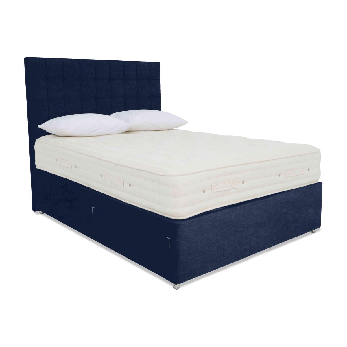Luxury comfort and firm support come together beautifully in the Hypnos Luxury Firm collection. Alongside superior craftsmanship and exceptional quality, this collection gives firm-mattress seekers something else – outstanding choice. The collection comprises four ranges – Hypnos Luxury Firm 1, Hypnos Luxury Firm 2, Hypnos Luxury Firm 3 and Hypnos Luxury Firm 4 – each of which offers a different combination of firm or extra-firm support and sumptuous comfort with layers of ReActive™ 6-turn pocket springs, cooling British-certified wool, and all-natural fillings. Shop the complete Luxury Firm collection for mattresses and divan sets with ottoman storage, hideaway storage and optional drawers. Handcrafted in the UK exclusively for Furniture Village. Offering a harmonious balance of extra firm mattress support and luxurious thermo-regulating natural fillings, the mattress in this stylish divan set promises better sleep. From Hypnos. Why you'll love it Sleep in luxury with this very firm mattress and divan set by Hypnos. A unique combination of truly luxurious comfort and extra firm support. 1,600 ReActive™ 6-turn pocket springs in king size respond to your shape and weight. Layers of temperature-regulating wool, cotton, flax, hemp and comfort fibres. Chemical-free linen and cotton sleep surface. Traditionally crafted with tufting and 3 rows of side stitching. Set on a supportive platform top base with optional storage drawers. Wide choice of upholstery fabrics. Handmade in the UK by Hypnos exclusively for Furniture Village. This divan set is part of the Hypnos Luxury Firm 4 range. What you need to know Mattress type: Pocket spring. Depth: 30 cm. Firmness: Extra firm. Springs: 1,600 ReActive™ 6-turn pocket springs in king size. Pillow top: No. Fillings: British certified wool; responsibly sourced cotton, flax and hemp; e. Olus™ recycled comfort fibres. Cover: Cotton, flax. Requires turning: No. Base type: Platform top with optional storage drawers. Not all drawer options are available in all sizes. Sizes: Single, small double, double, king, super king. Mattress care:Air for 4 hours before using to remove any odour. Allow at least 4 hours for springs to settle and for mattress to attain its full size. Indentations caused by settlement of fillings or body weight are normal and are not considered defects. If used on a slatted bed frame, the space between slats must be no wider than 7.5 cm. Spaces wider than this may cause excess dipping of the mattress and invalidate the guarantee. Always use a mattress protector. Rotate regularly. Divan base care: Clean upholstery weekly using a soft brush or vacuum with the curtain attachment. Professional cleaning advised for oil- and grease-based stains. Some fabrics can show wear on areas of more use or in direct sunlight.