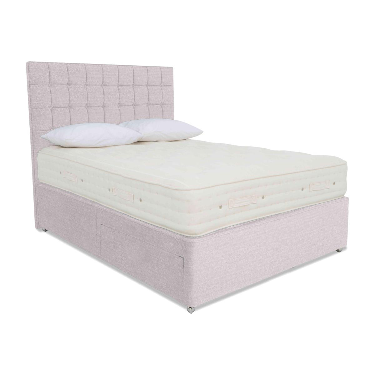 Luxury comfort and firm support come together beautifully in the Hypnos Luxury Firm collection. Alongside superior craftsmanship and exceptional quality, this collection gives firm-mattress seekers something else – outstanding choice. The collection comprises four ranges – Hypnos Luxury Firm 1, Hypnos Luxury Firm 2, Hypnos Luxury Firm 3 and Hypnos Luxury Firm 4 – each of which offers a different combination of firm or extra-firm support and sumptuous comfort with layers of ReActive™ 6-turn pocket springs, cooling British-certified wool, and all-natural fillings. Shop the complete Luxury Firm collection for mattresses and divan sets with ottoman storage, hideaway storage and optional drawers. Handcrafted in the UK exclusively for Furniture Village. Offering a harmonious balance of extra firm mattress support and luxurious thermo-regulating natural fillings, the mattress in this stylish divan set promises better sleep. From Hypnos. Why you'll love it Sleep in luxury with this very firm mattress and divan set by Hypnos. A unique combination of truly luxurious comfort and extra firm support. 1,600 ReActive™ 6-turn pocket springs in king size respond to your shape and weight. Layers of temperature-regulating wool, cotton, flax, hemp and comfort fibres. Chemical-free linen and cotton sleep surface. Traditionally crafted with tufting and 3 rows of side stitching. Set on a supportive platform top base with optional storage drawers. Wide choice of upholstery fabrics. Handmade in the UK by Hypnos exclusively for Furniture Village. This divan set is part of the Hypnos Luxury Firm 4 range. What you need to know Mattress type: Pocket spring. Depth: 30 cm. Firmness: Extra firm. Springs: 1,600 ReActive™ 6-turn pocket springs in king size. Pillow top: No. Fillings: British certified wool; responsibly sourced cotton, flax and hemp; e. Olus™ recycled comfort fibres. Cover: Cotton, flax. Requires turning: No. Base type: Platform top with optional storage drawers. Not all drawer options are available in all sizes. Sizes: Single, small double, double, king, super king. Mattress care:Air for 4 hours before using to remove any odour. Allow at least 4 hours for springs to settle and for mattress to attain its full size. Indentations caused by settlement of fillings or body weight are normal and are not considered defects. If used on a slatted bed frame, the space between slats must be no wider than 7.5 cm. Spaces wider than this may cause excess dipping of the mattress and invalidate the guarantee. Always use a mattress protector. Rotate regularly. Divan base care: Clean upholstery weekly using a soft brush or vacuum with the curtain attachment. Professional cleaning advised for oil- and grease-based stains. Some fabrics can show wear on areas of more use or in direct sunlight.