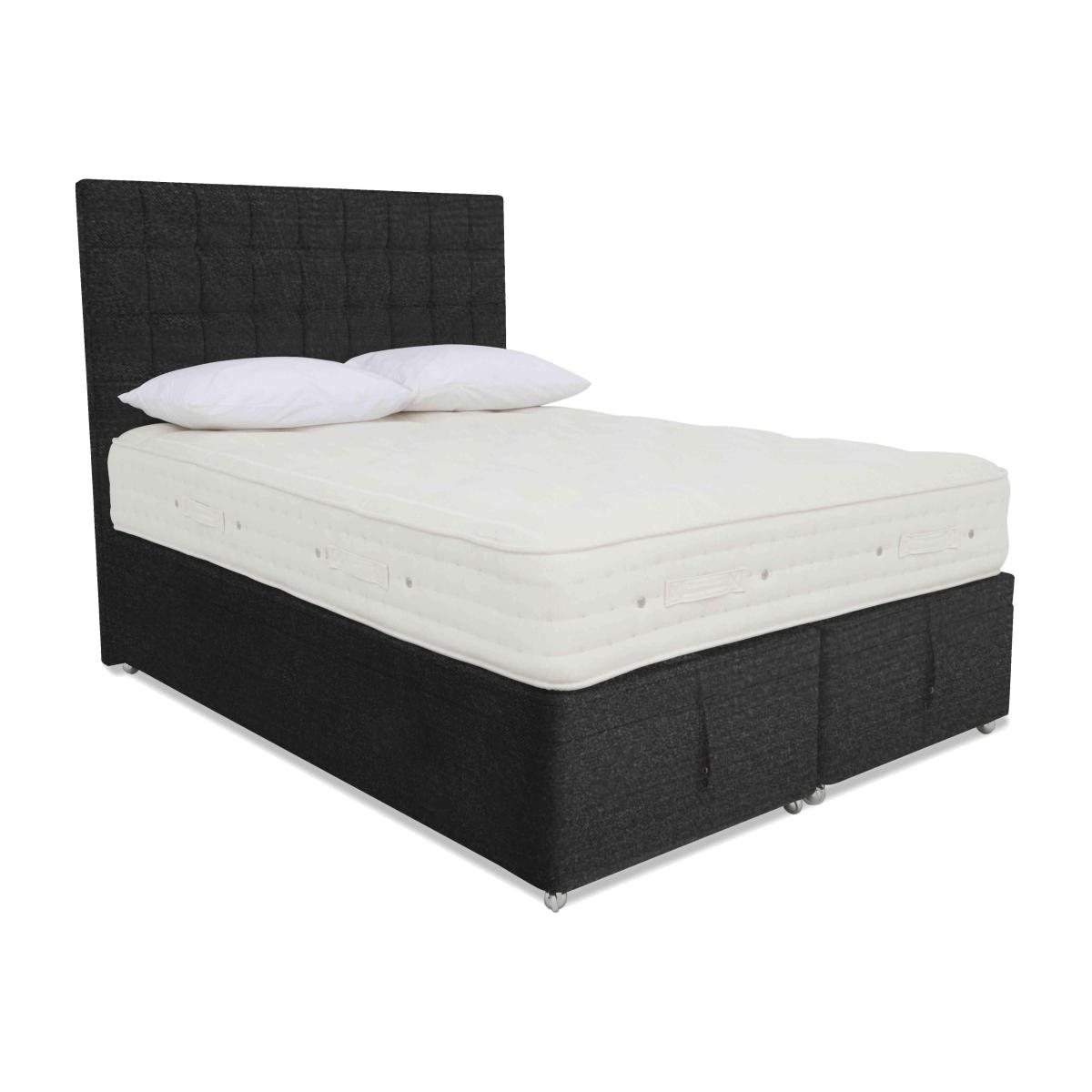 Luxury comfort and firm support come together beautifully in the Hypnos Luxury Firm collection. Alongside superior craftsmanship and exceptional quality, this collection gives firm-mattress seekers something else – outstanding choice. The collection comprises four ranges – Hypnos Luxury Firm 1, Hypnos Luxury Firm 2, Hypnos Luxury Firm 3 and Hypnos Luxury Firm 4 – each of which offers a different combination of firm or extra-firm support and sumptuous comfort with layers of ReActive™ 6-turn pocket springs, cooling British-certified wool, and all-natural fillings. Shop the complete Luxury Firm collection for mattresses and divan sets with ottoman storage, hideaway storage and optional drawers. Handcrafted in the UK exclusively for Furniture Village. With spacious underbed storage plus an extra firm yet very luxurious mattress, this Hypnos ottoman divan set is like no other. And you’ll only find it at Furniture Village. Why you'll love it Enjoy practical storage and an ultra-firm mattress in this stylish ottoman divan set. A unique combination of truly luxurious comfort and extra firm support. 1,600 ReActive™ 6-turn pocket springs in king size respond to your shape and weight. Layers of temperature-regulating wool, cotton, flax, hemp and comfort fibres. Chemical-free linen and cotton sleep surface. Traditionally crafted with tufting and 3 rows of side stitching. Set on a supportive platform top base with spacious ottoman storage. Wide choice of upholstery fabrics. Handmade in the UK by Hypnos exclusively for Furniture Village. This ottoman divan set is part of the Hypnos Luxury Firm 4 range. What you need to know Mattress type: Pocket spring. Depth: 30 cm. Firmness: Extra firm. Springs: 1,600 ReActive™ 6-turn pocket springs in king size. Pillow top: No. Fillings: British certified wool; responsibly sourced cotton, flax and hemp; e. Olus™ recycled comfort fibres. Cover: Cotton, flax. Requires turning: No. Base type: Platform top with ottoman storage. Sizes: Single, double, king, super king. Mattress care:Air for 4 hours before using to remove any odour. Allow at least 4 hours for springs to settle and for mattress to attain its full size. Indentations caused by settlement of fillings or body weight are normal and are not considered defects. If used on a slatted bed frame, the space between slats must be no wider than 7.5 cm. Spaces wider than this may cause excess dipping of the mattress and invalidate the guarantee. Always use a mattress protector. Rotate regularly. Divan base care: Clean upholstery weekly using a soft brush or vacuum with the curtain attachment. Professional cleaning advised for oil- and grease-based stains. Some fabrics can show wear on areas of more use or in direct sunlight.