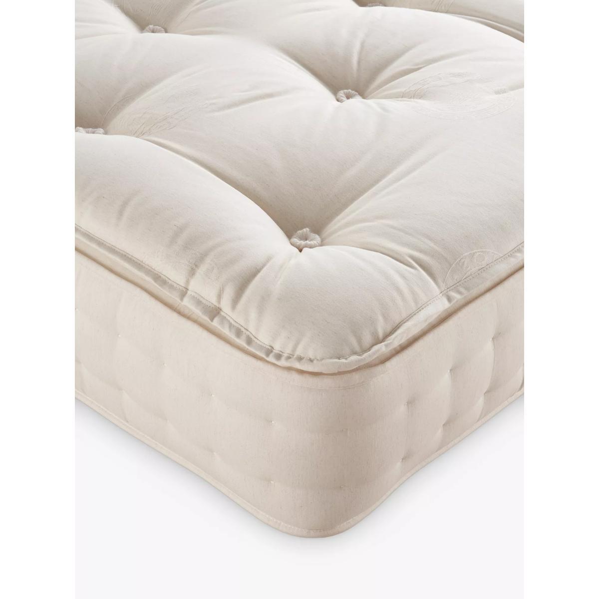 Made in the UK Handmade by experts in Britain, the Luxury Wool No.2 collection of mattresses are upholstered with deep layers of responsibly sourced, breathable natural fibres which sit alongside engineered springs from their patented ReActive™ pocket spring system. Plus, with the addition of a luxurious pillow top layer, this mattress provides unparalleled support and pressure relief and encourages you to gently sink into the mattress before enjoying a rejuvenating night’s sleep. There are 1,200 springs in the king size model. Comfort with Integrity The pure British wool within this mattress comes from award-winning Waitrose farms, as well as British Red Tractor assured farms. Not only an ideal fibre for mattresses thanks to its natural temperature-regulating and moisture wicking properties, it’s also fully traceable as part of Hypnos’ commitment to responsible and ethical manufacturing. Hypnos has been part of the Woolkeepers® initiative since 2019, which guarantees a fair deal for the farmers and enables them to reinvest in native breeds, their soil and biodiversity. These farms are assured by Red Tractor, the UK’s biggest farm and food standards scheme which covers the full farm supply chain, including animal welfare, traceability and environmental protection. ReActive™ pocket spring technology The pocket springs in this mattress provide total support as they follow the contours of your body, encourage a natural alignment of the spine and alleviate pressure points. They also encourage airflow to circulate throughout the mattress, providing ventilation to the fillings while keeping your mattress fresh and dry. Additional Adaptiv™ comfort mini springs Working alongside the intelligent pocket springs, these mini springs sense and flex to your shape as you move throughout the night. Chemical free cover This mattress features a luxurious, unbleached cotton and silky smooth kapok cover, responsibly sourced and manufactured and free from traditional chemical flame retardant treatments. It’s also naturally fire retardant. Try before you buy This is an important purchase and it’s worthwhile to try your choice of mattress in one of our shops to make sure it's right for you. Our store Partners will be able to tell you more about its benefits, and recommend options based on your needs.