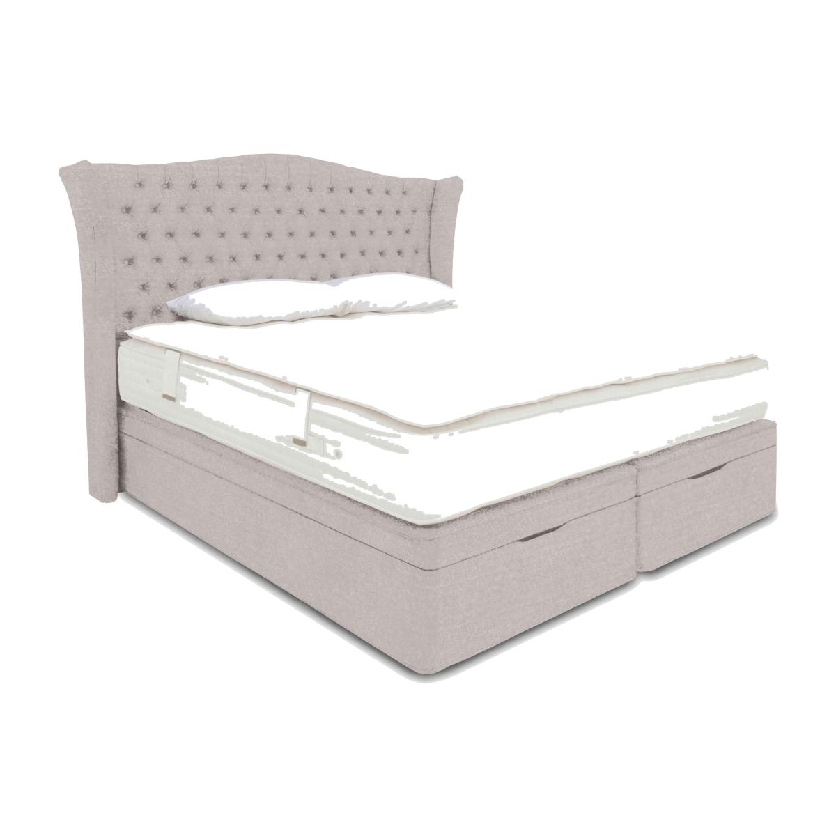 Enjoy royally comfortable sleep with the mattresses and divan beds in our Hypnos Bespoke Majestic collection. Mattresses are layered with 10-turn ReActivePro™ pocket springs, naturally luxurious Talalay latex, cotton, responsibly sourced British wool for cooling comfort and, perhaps best of all, sumptuous pillow tops. Pillow tops are detachable, which makes the mattresses in this collection turnable – we recommend seasonally – for comfort that lasts even longer. The collection also includes divan sets with optional storage drawers and ottoman compartments. The handcrafted Hypnos Bespoke Majestic range is exclusive to Furniture Village. Both the mattress and the ottoman storage divan base in this set are sprung for superb support. The mattress has latex, cotton and British wool fillings and a detachable pillow top for luxurious comfort. Why you'll love it Wonderful ottoman divan set has a sumptuous mattress with a detachable pillow top. Mattress has 1800 10-turn ReActivePro™ pocket springs in king size for responsive support. Layers of Talalay latex offer a naturally luxurious feel. Filled with cotton and traceable British wool that meets the Responsible Wool Standard. Removable pillow top is filled with wool and Talalay latex. Woven damask sleep surface made from responsibly sourced unbleached cotton. Triple Edge Protection™ and 4 rows of hand side stitching for superior edge support. Mattress requires only seasonal turning for year-round comfort and support. Choice of medium, firm and dual medium/firm tension. Sprung, firm-edge platform-top divan base has 1000 pocket springs in king size. With spacious end-opening ottoman storage compartment. In an exceptionally wide selection of upholstery fabrics. Handcrafted in England and only at Furniture Village. This sprung ottoman divan set is part of the Hypnos Bespoke Majestic range. What you need to know Headboard is available separately. Mattress type: Pocket spring. Depth: 33 cm. Weight:Single 31.1 kg, small double 41.1 kg, double 46.6 kg, king 54.5 kg and super king 65.4 kg. Firmness: Medium and firm. Dual tension available in king and super king sizes. Springs: 1800 in king size. Pillow top: Yes – filled with wool and Talalay latex. Fillings: Wool, Talalay latex and cotton. Cover: Cotton, viscose and flax. Requires turning: Yes. Base type: Sprung, firm-edge platform-top with end-opening ottoman storage. Sizes: Single, small double, double, king, super king. Mattress care:Air for 4 hours before using to remove any odour. Indentations caused by settlement of fillings or body weight are normal and are not considered defects. If used on a slatted bed frame, the space between slats must be no wider than 7.5 cm. Spaces wider than this may cause excess dipping of the mattress and invalidate the guarantee. Always use a mattress protector. Rotate regularly. Divan base care: Clean upholstery weekly using a soft brush or vacuum with the curtain attachment. Professional cleaning advised for oil- and grease-based stains. Some fabrics can show wear on areas of more use or in direct sunlight.